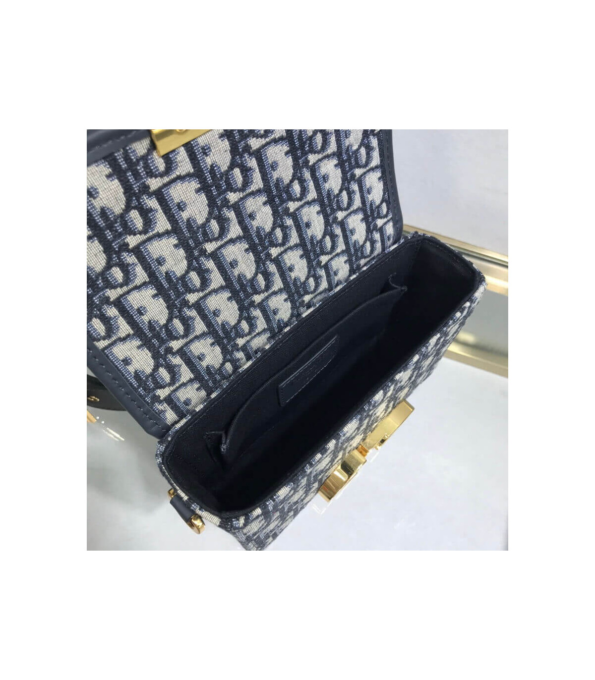 – Large, removable and adjustable leather shoulder strap with ‘Christian Dior’ military-inspired buckle