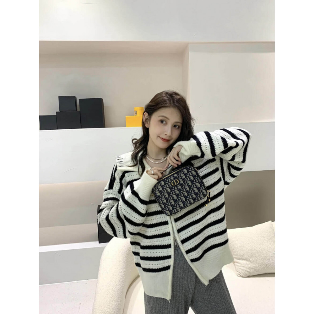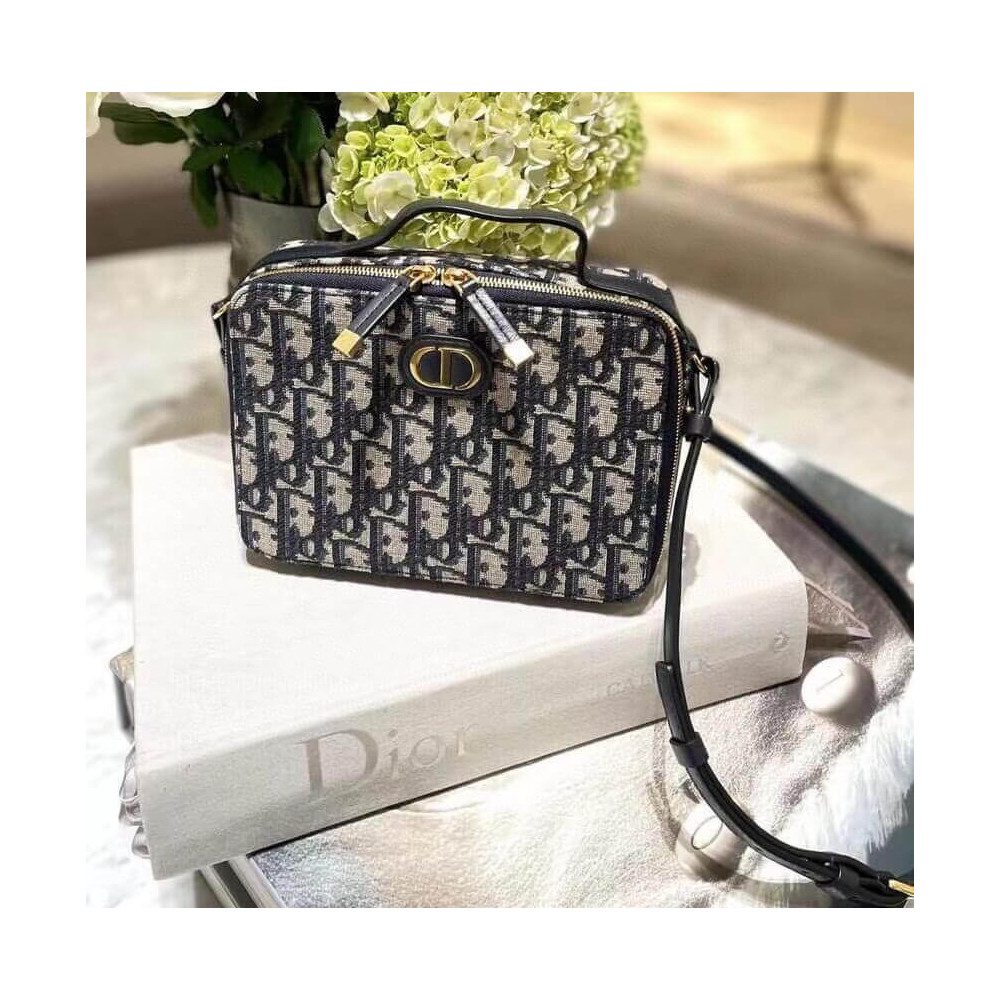New this season, Maria Grazia Chiuri’s 30 Montaigne box bag is a modern creation. Crafted in blue multicolor jacquard, it stands out with a Dior Oblique motif and a spacious compartment, including three card slots, to accommodate all the daily essentials. The removable and adjustable leather strap offers comfortable wear either over the shoulder or crossbody, while the handle allows it to be carried by hand.