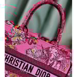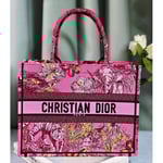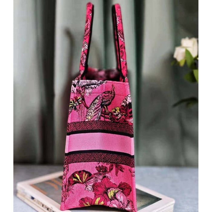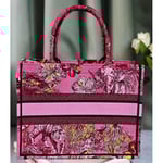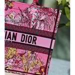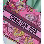 The Dior Book Tote is an original creation introduced by Christian Dior’s Creative Director, Maria Grazia Chiuri, and has become a staple of the Dior aesthetic. Designed to hold all the daily essentials, it is fully embroidered with the fuchsia multicolor Toile de Jouy Voyage motif by Pietro Ruffo, setting Mr. Dior’s iconic pattern into the heart of Indian flora and fauna. Adorned with a Christian Dior Paris signature on the front, the medium tote exemplifies the House’s signature savoir-faire and may be carried by hand or worn over the shoulder.