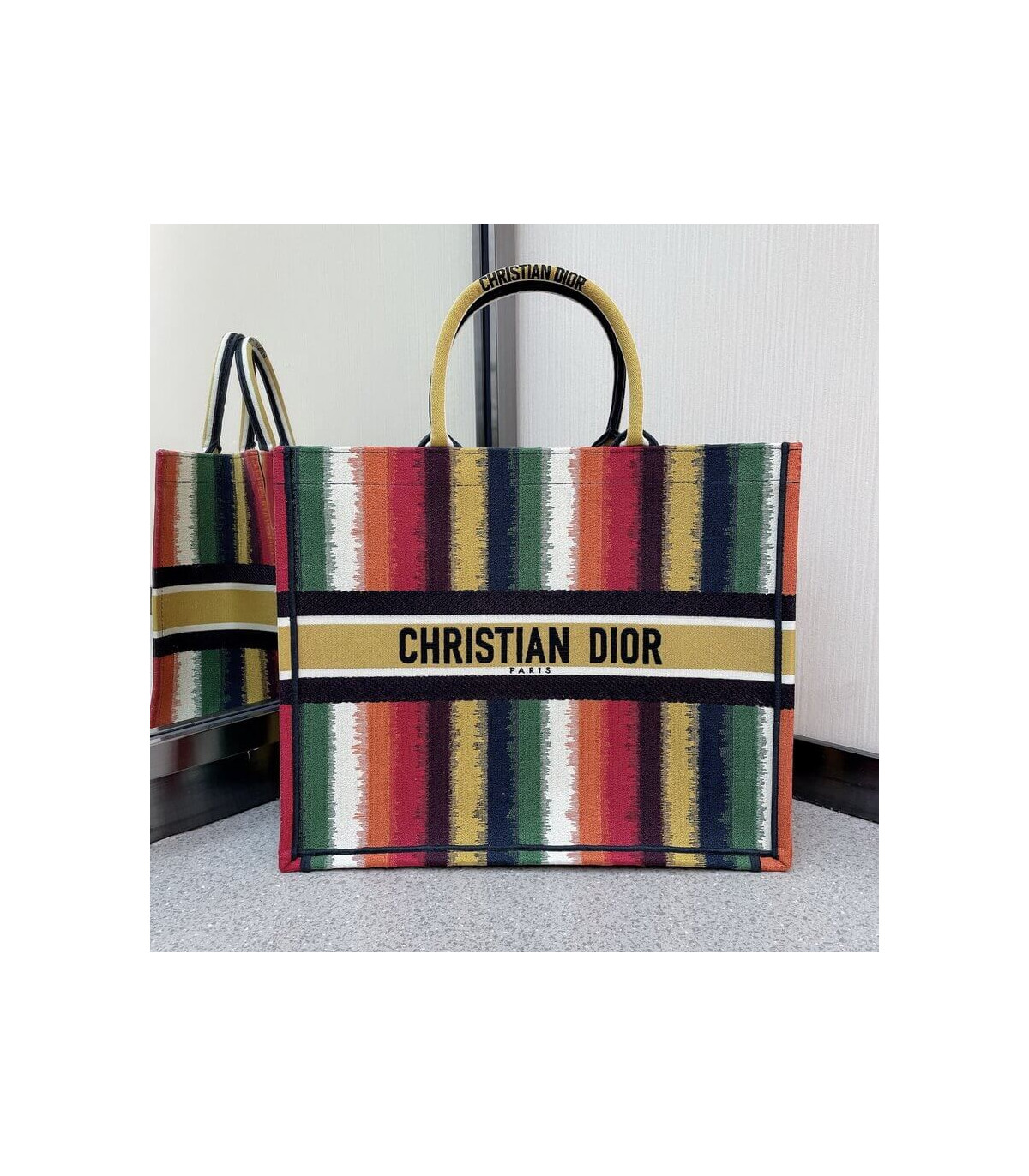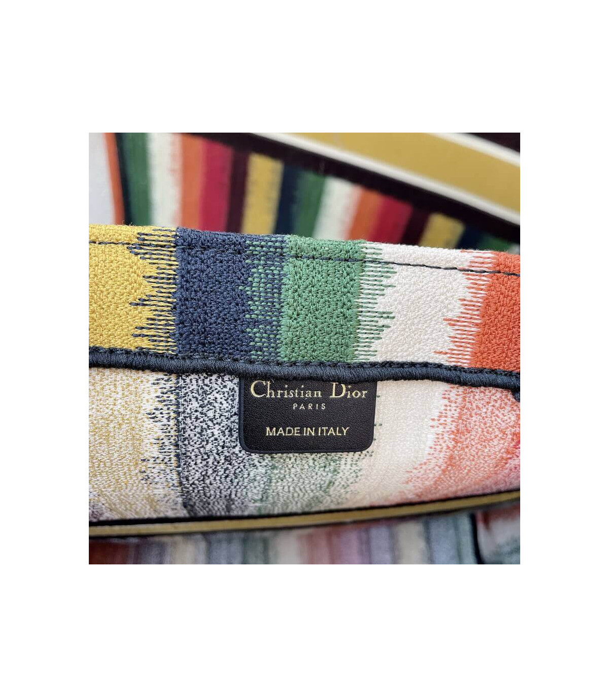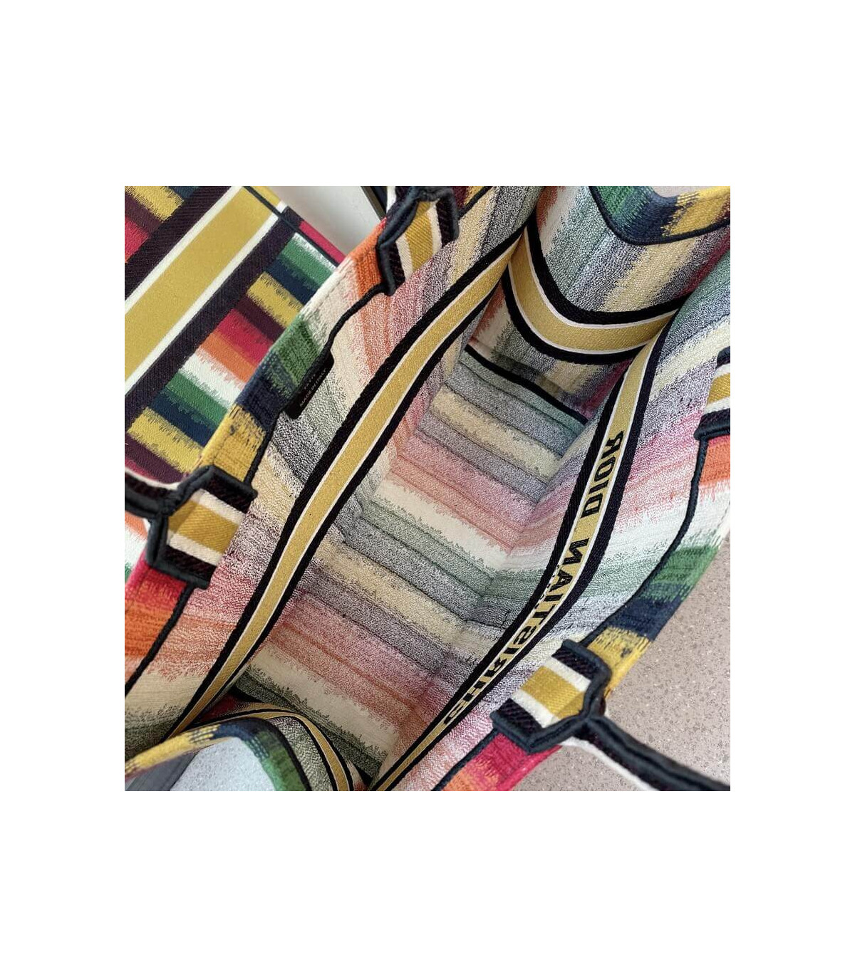 Christian Dior Small Book Tote Multicolor Stripes Embroidery