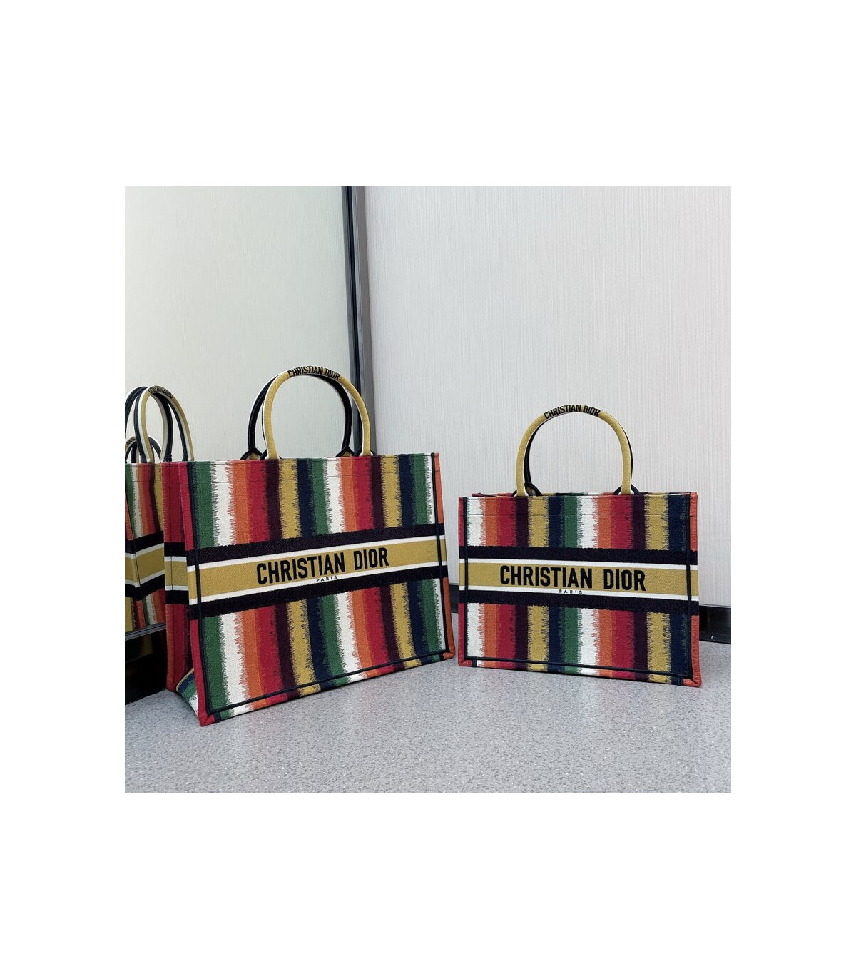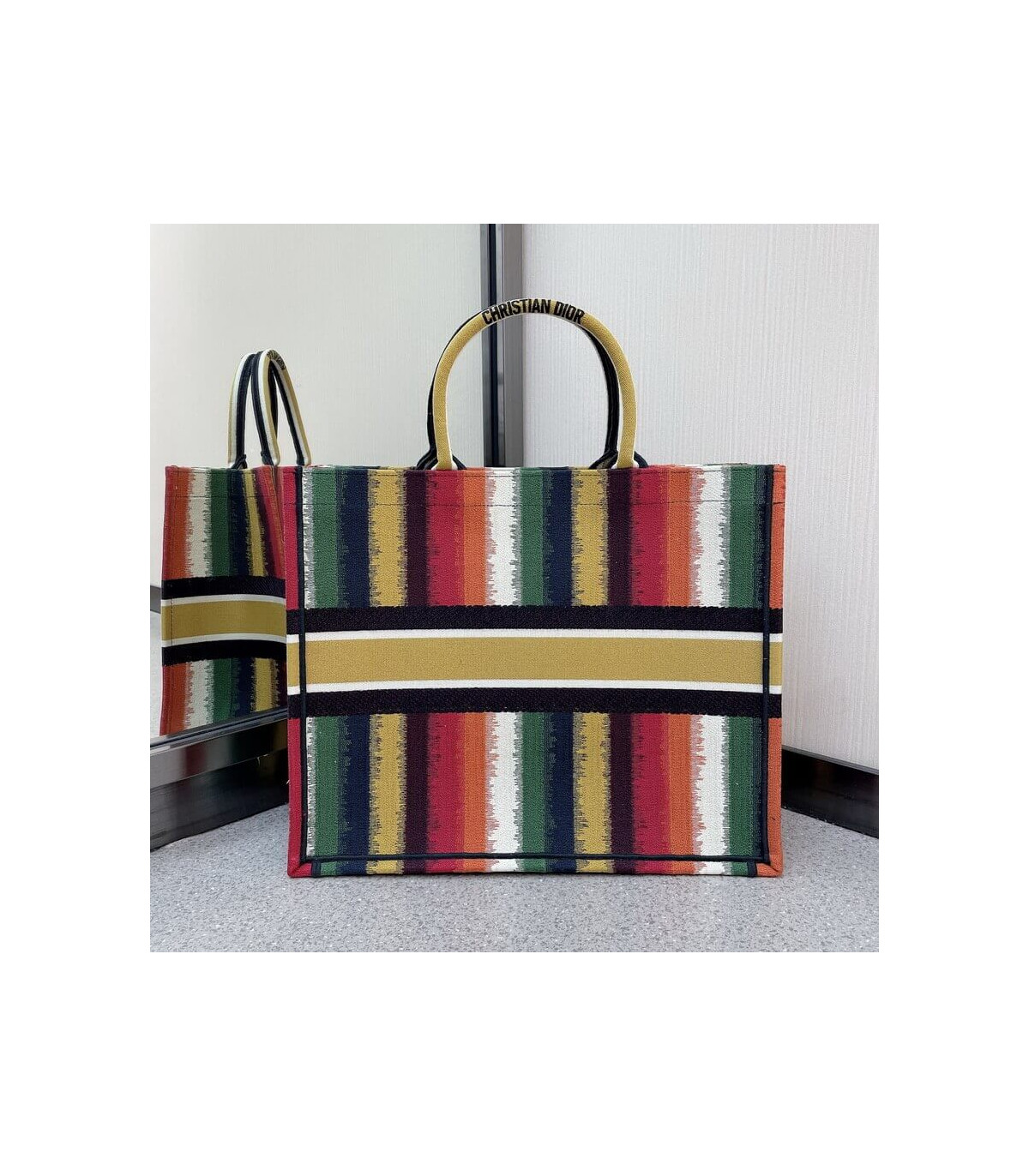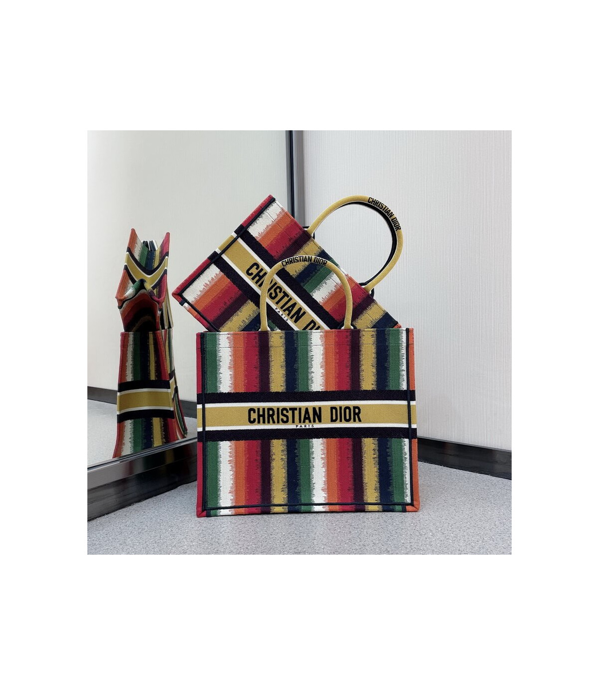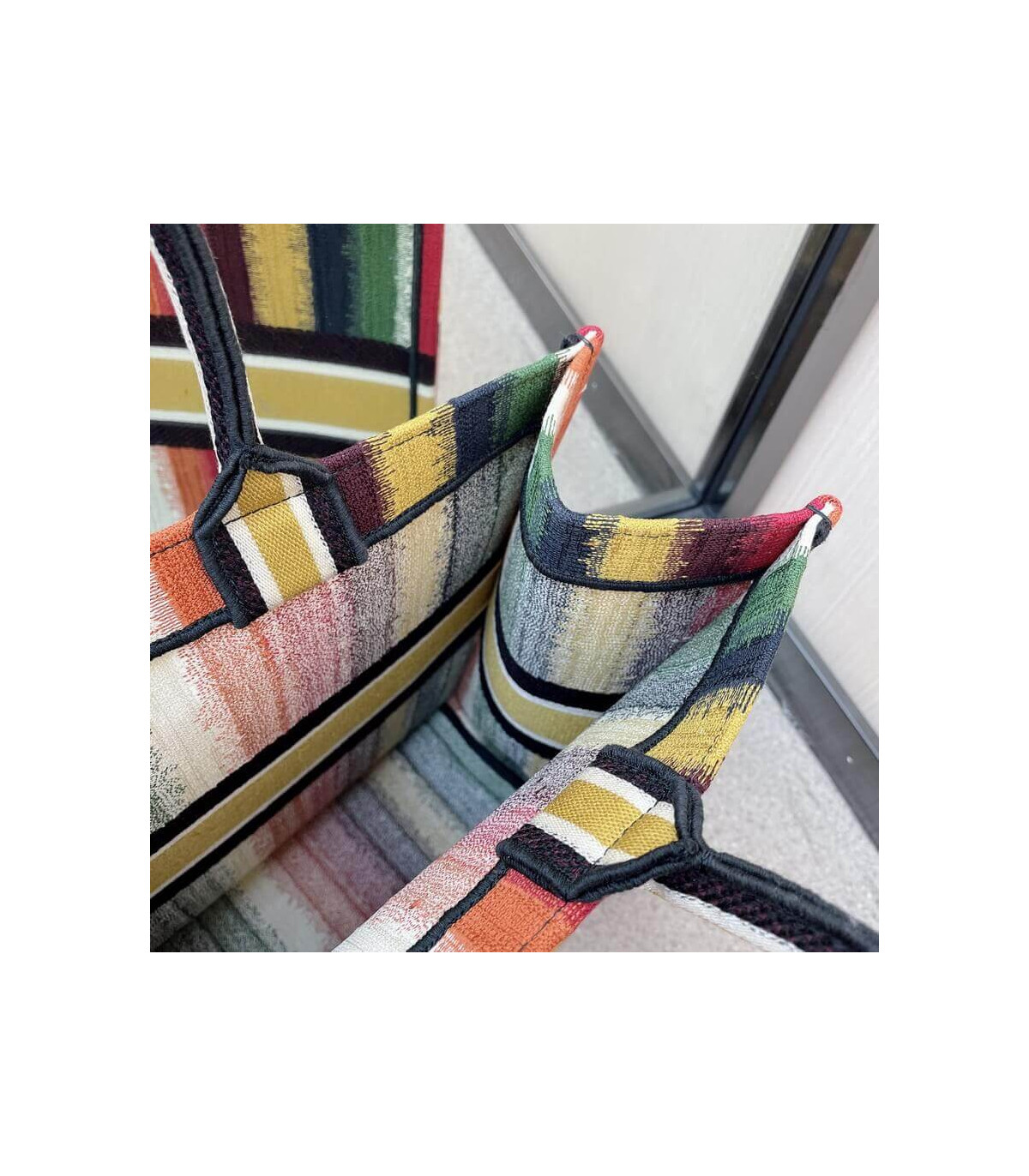 Christian Dior Small Book Tote Multicolor Stripes Embroidery