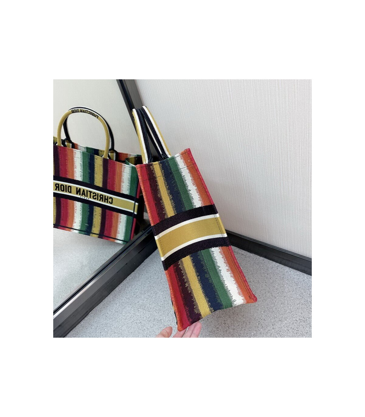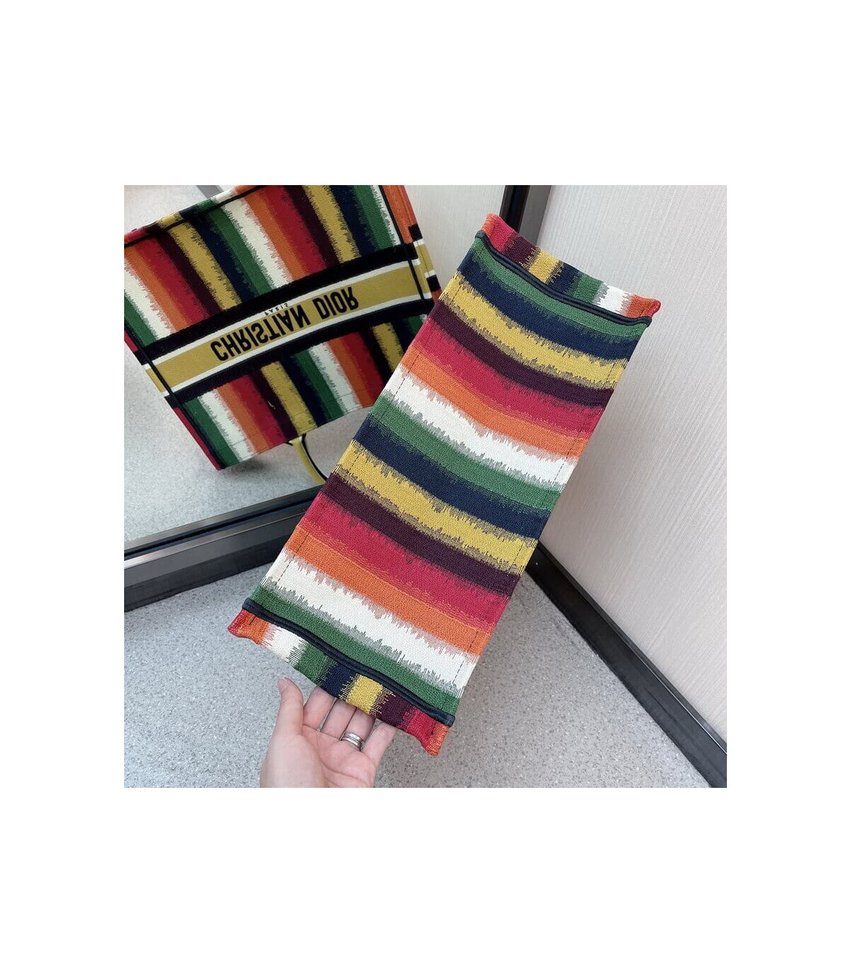Christian Dior Small Book Tote Multicolor Stripes Embroidery $345.00