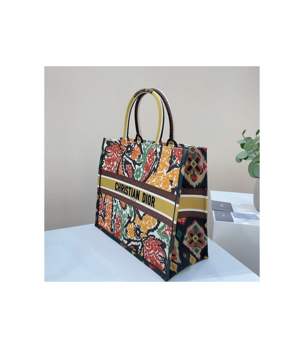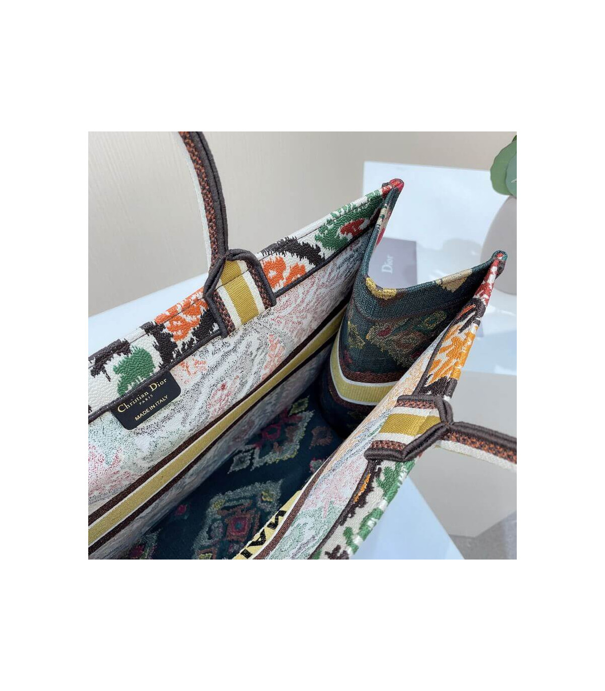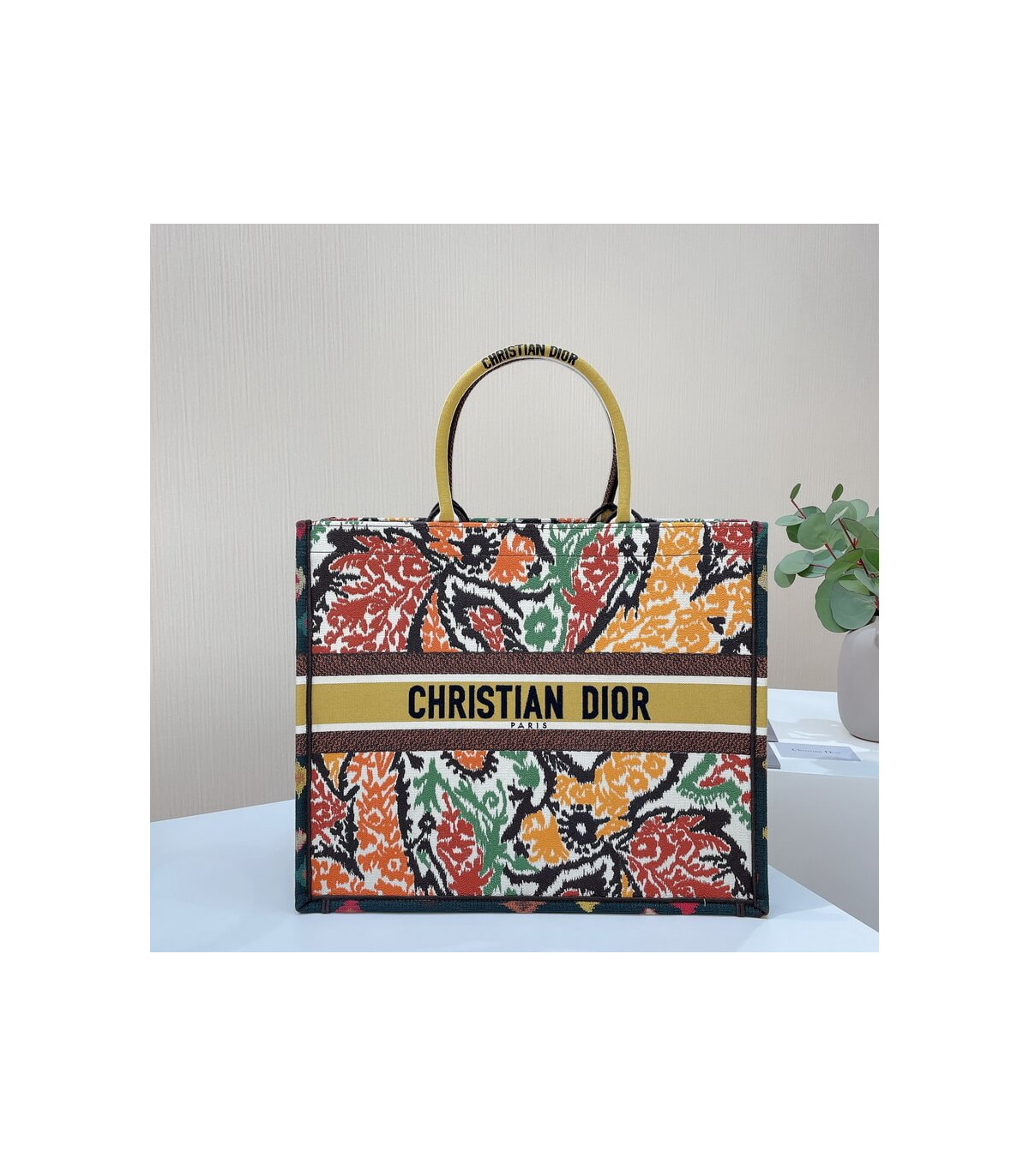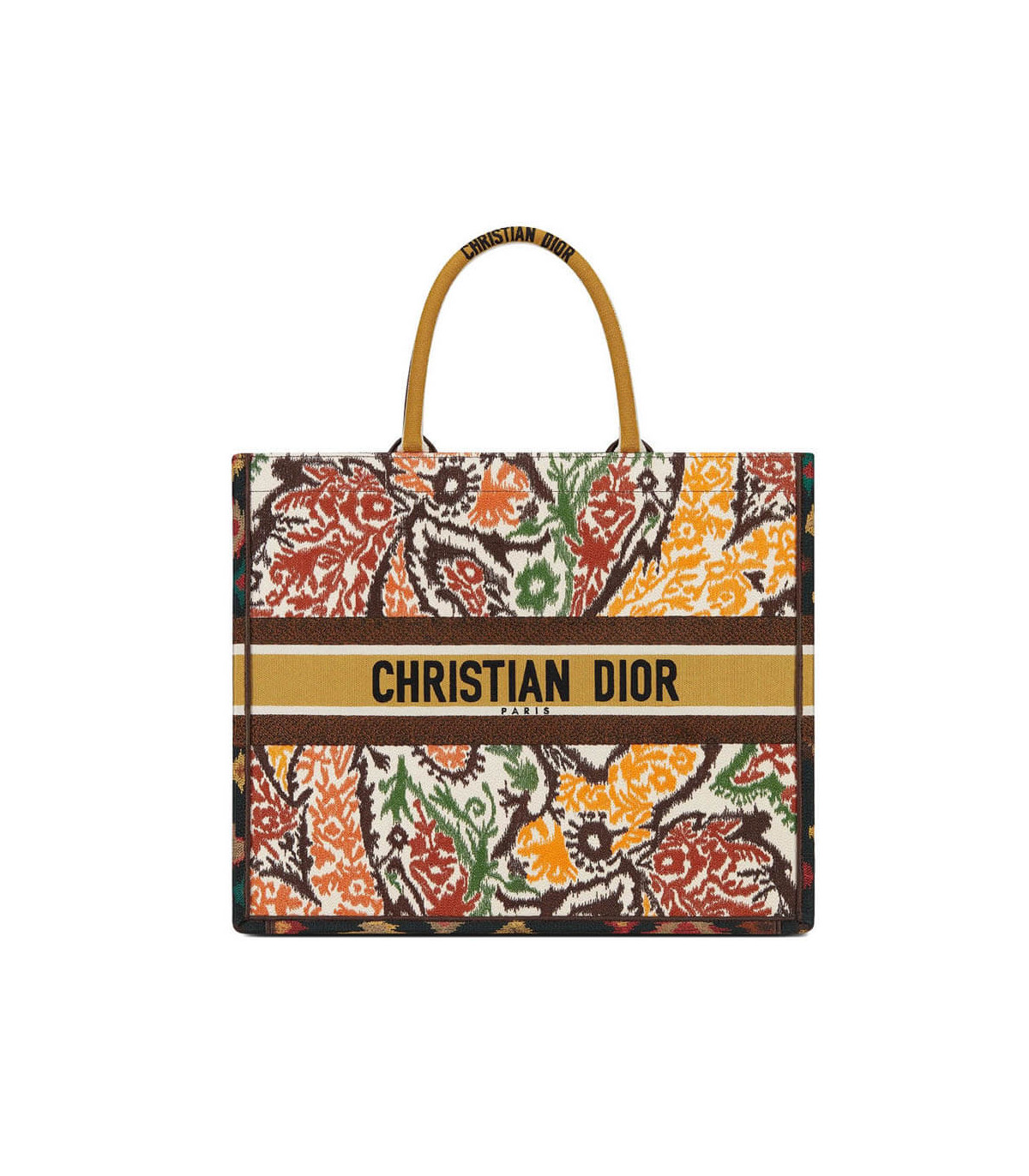 The Dior Book Tote, an original style introduced by Creative Director Maria Grazia Chiuri, has become a staple of the Dior aesthetic. Designed to carry all the daily essentials, the silhouette is fully embroidered with a multicolor and heathered-effect Dior Paisley motif. The front boasts a ‘Christian Dior’ signature while a tonal graphic motif adorns the sides for a contrasting modern touch. The carryall is a prime example of Dior savoir-faire.