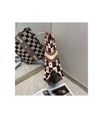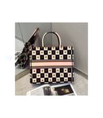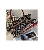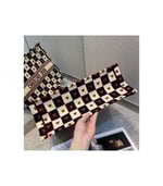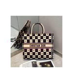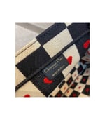 The Dior Book Tote, part of the Dioramour capsule, is an original creation introduced by Dior’s Creative Director, Maria Grazia Chiuri, and has become a staple of the Dior aesthetic. The design is part of the Dioramour capsule and is fully embroidered with the black, white and red D-Chess Heart motif, further adorned with the ‘CHRISTIAN DIOR’ signature on the front. The small tote exemplifies the House’s signature savoir-faire and may be carried by hand or worn over the shoulder.