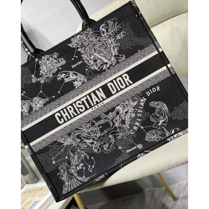 Christian Dior Medium Book Tote Black Toile de Jouy Zodiac Embroidery $345.00