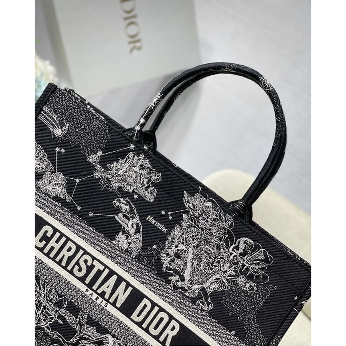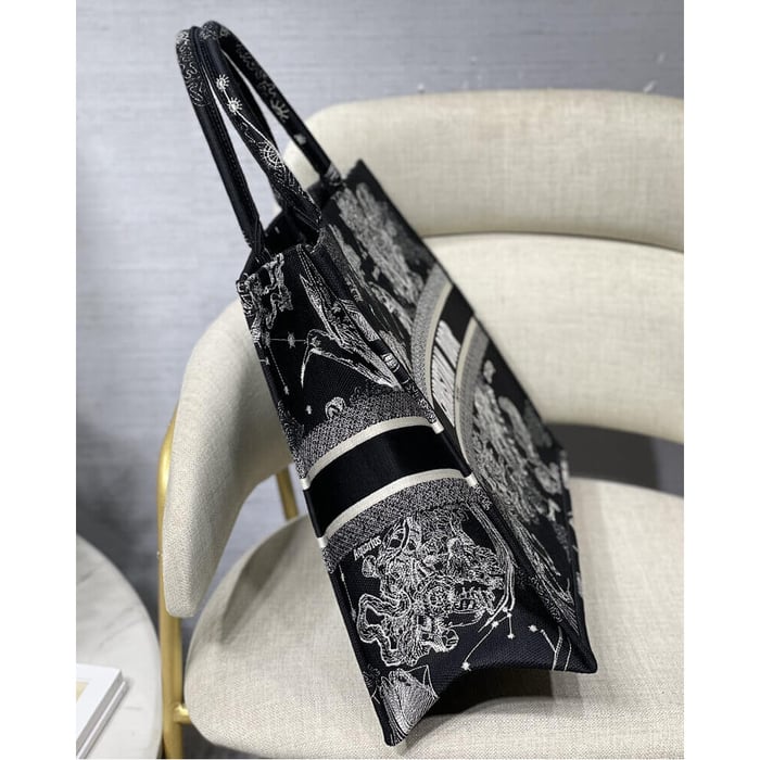 Christian Dior Large Book Tote Black Toile de Jouy Zodiac Embroidery