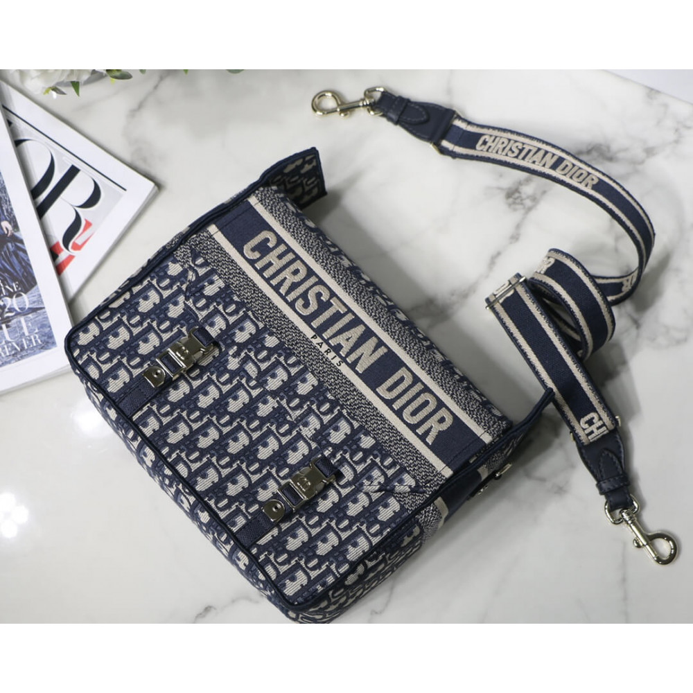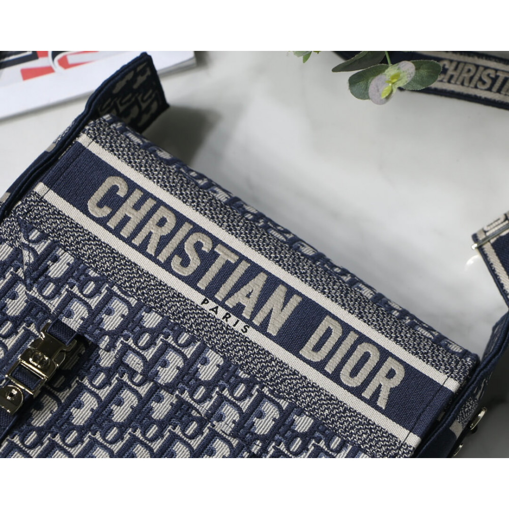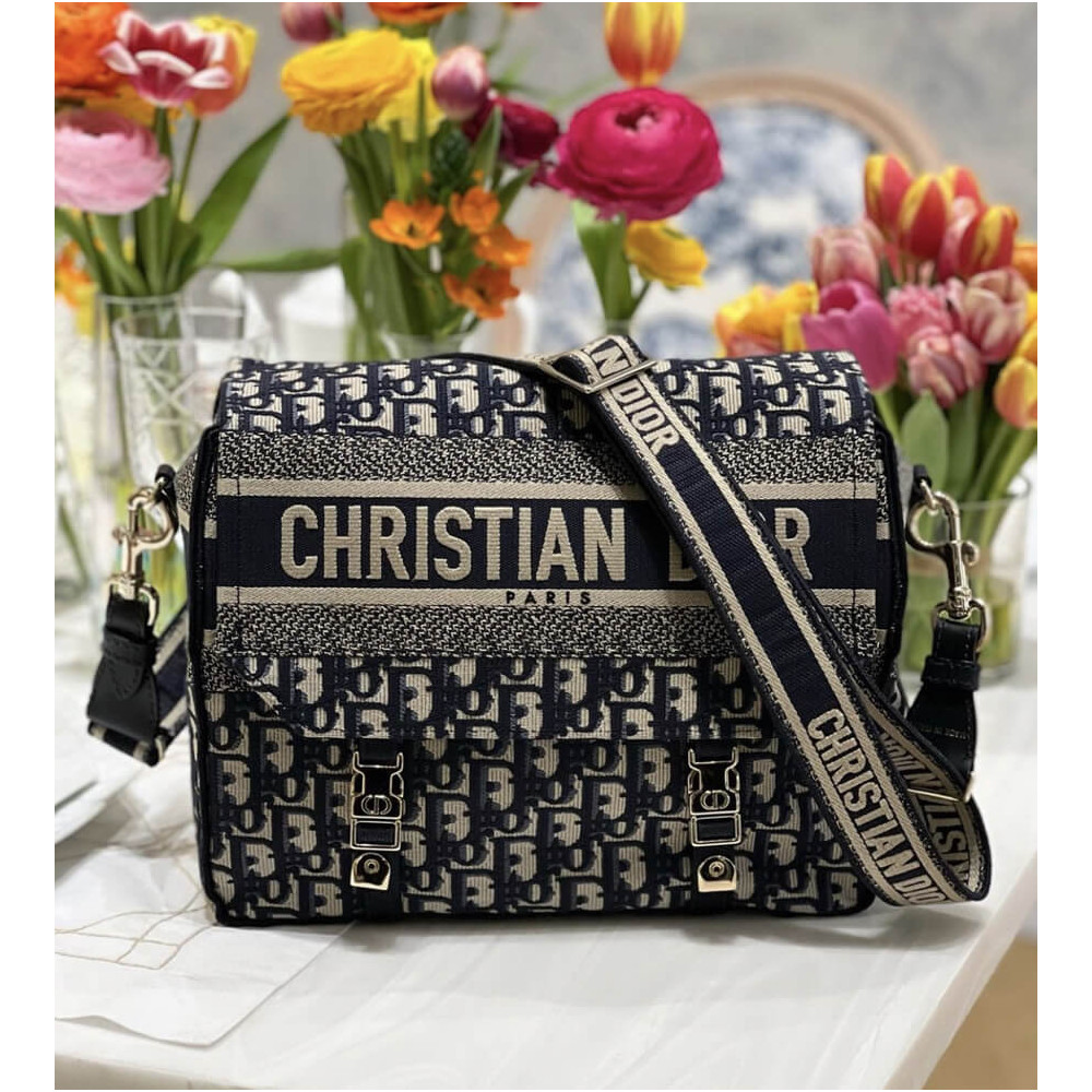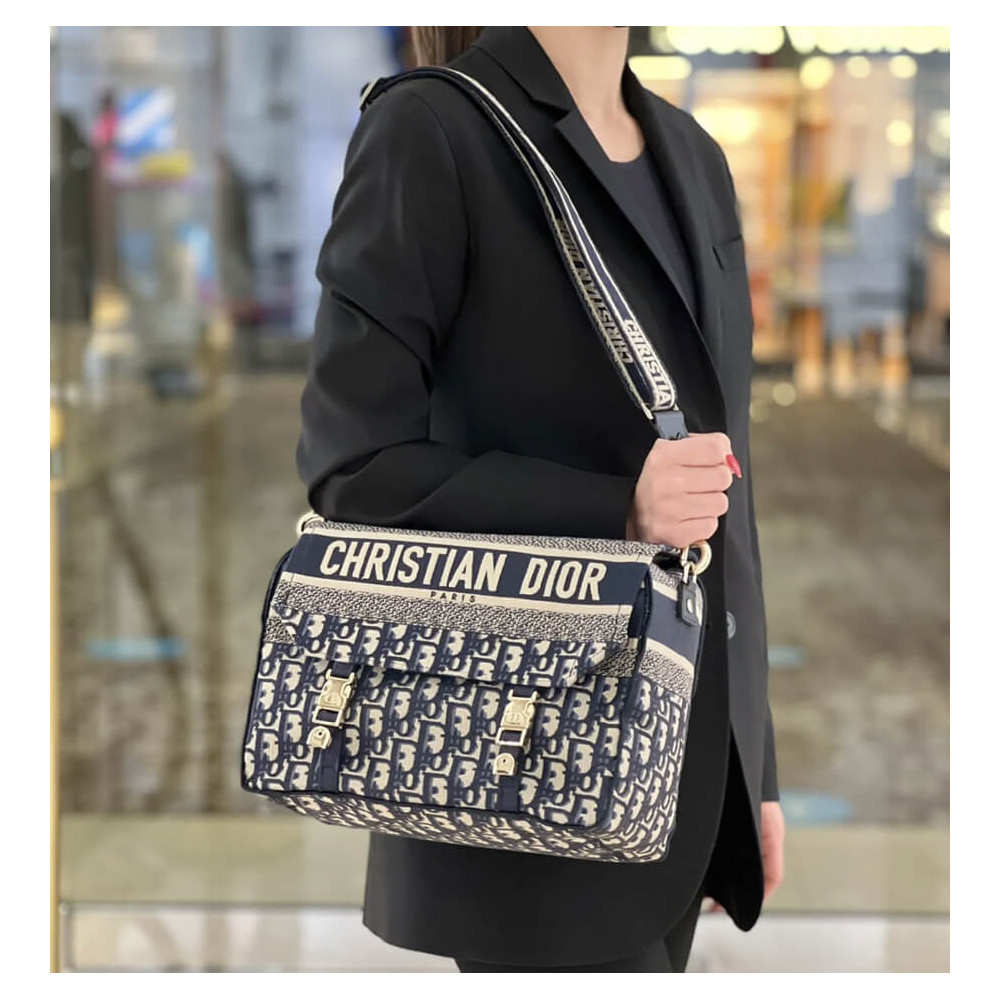 Maria Grazia Chiuri has updated the classic messenger bag by adding signature Dior details for a relaxed and modern look. Fully embroidered with the blue Dior Oblique motif, the Diorcamp bag is enhanced by a ‘CHRISTIAN DIOR PARIS’ signature flap, as well as sportswear-inspired ‘CD’ buckles. Equipped with an adjustable and removable shoulder strap, the spacious medium messenger bag can be worn over the shoulder or crossbody, and will make an ideal urban companion.