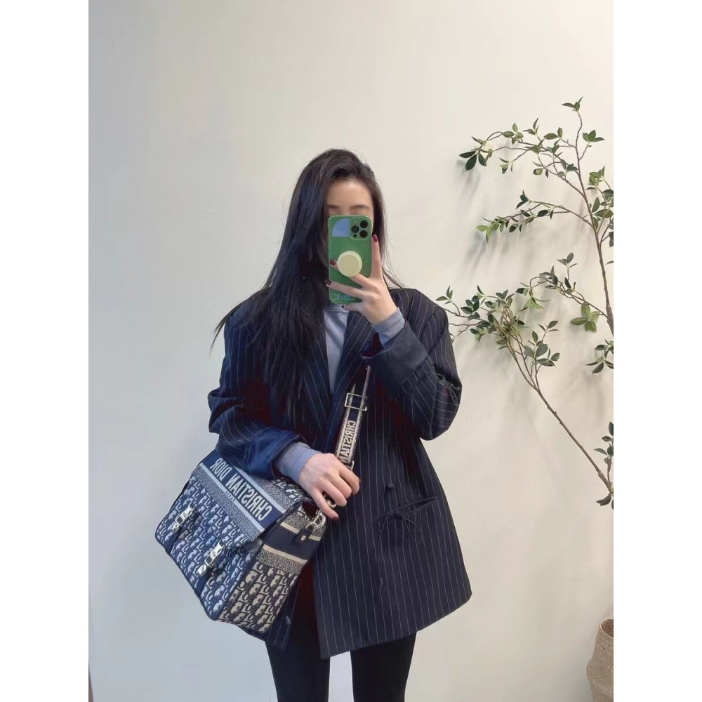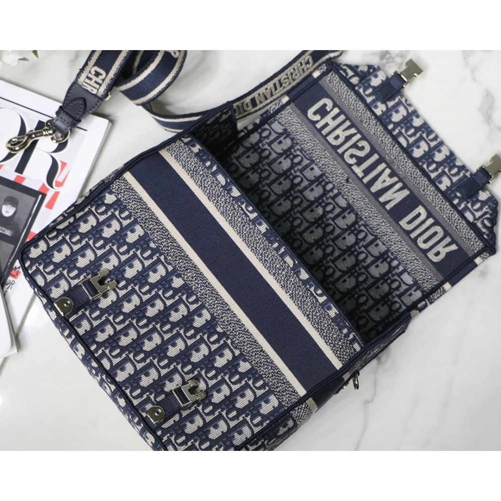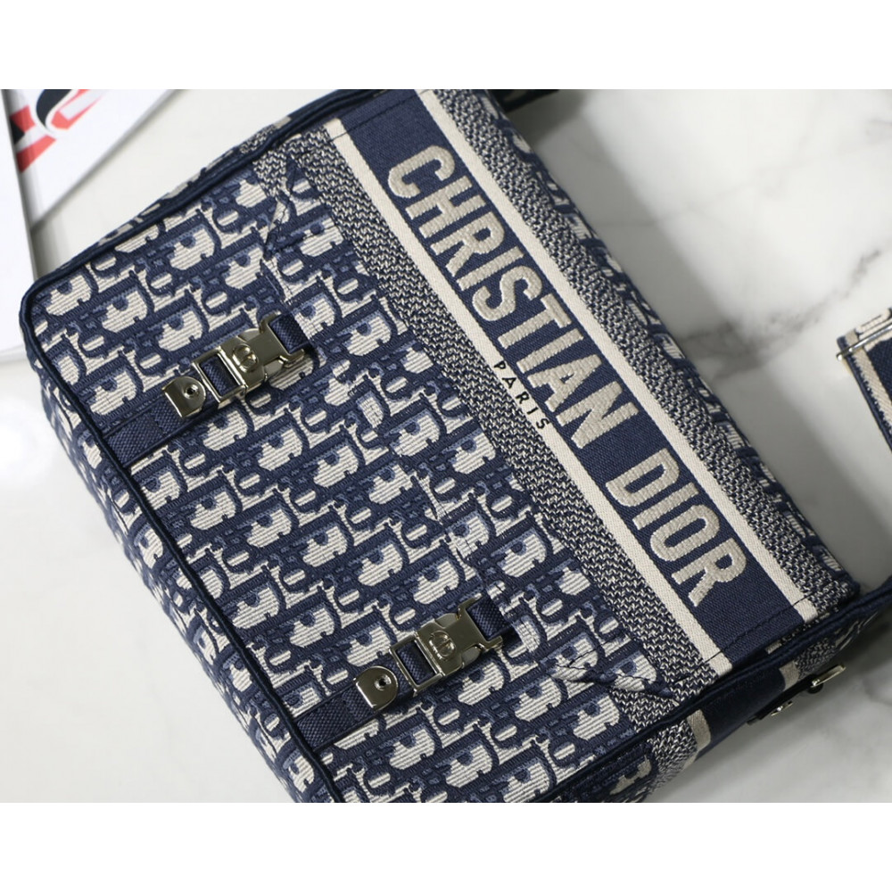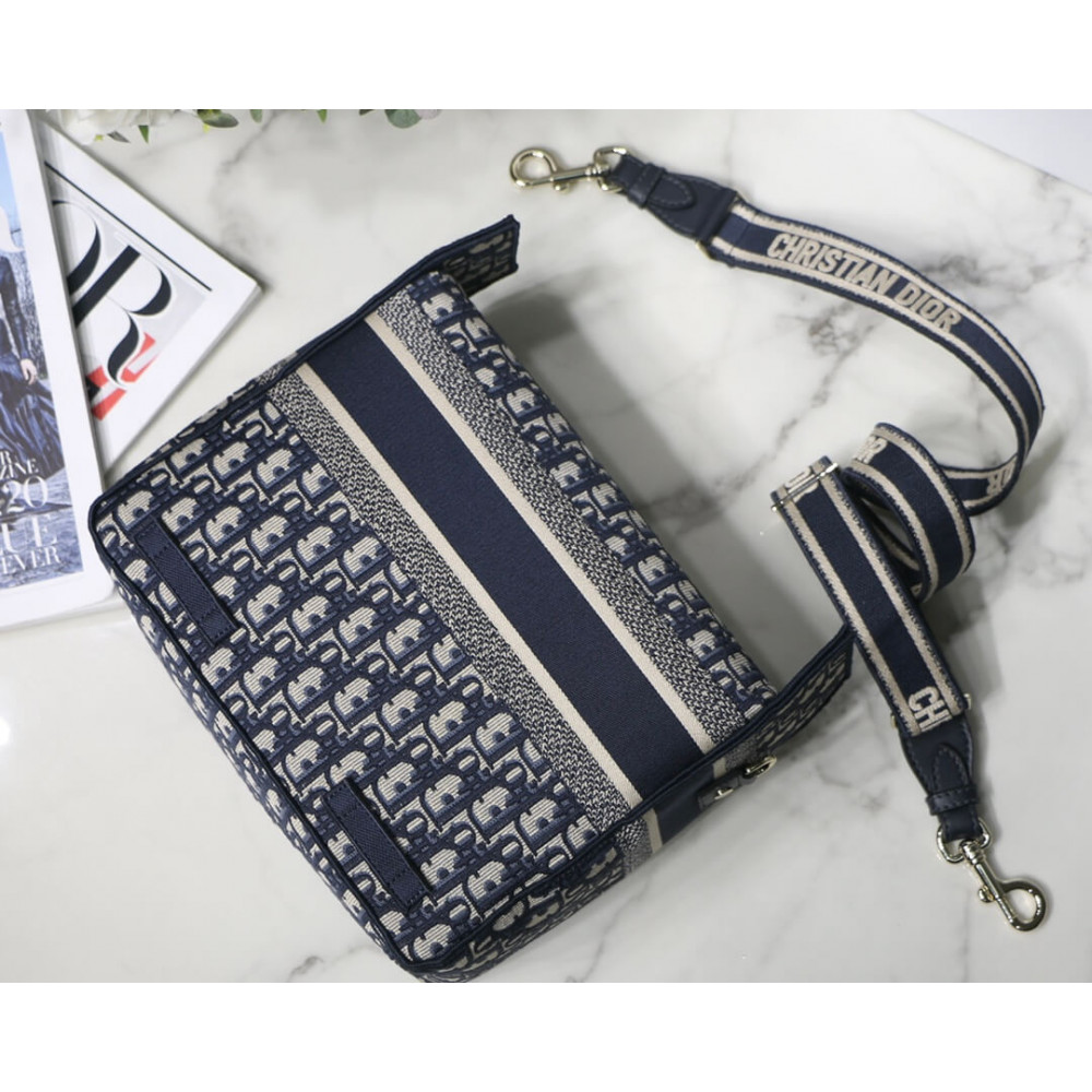 Maria Grazia Chiuri has updated the classic messenger bag by adding signature Dior details for a relaxed and modern look. Fully embroidered with the blue Dior Oblique motif, the Diorcamp bag is enhanced by a ‘CHRISTIAN DIOR PARIS’ signature flap, as well as sportswear-inspired ‘CD’ buckles. Equipped with an adjustable and removable shoulder strap, the spacious medium messenger bag can be worn over the shoulder or crossbody, and will make an ideal urban companion.