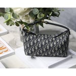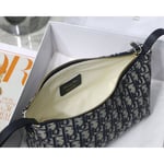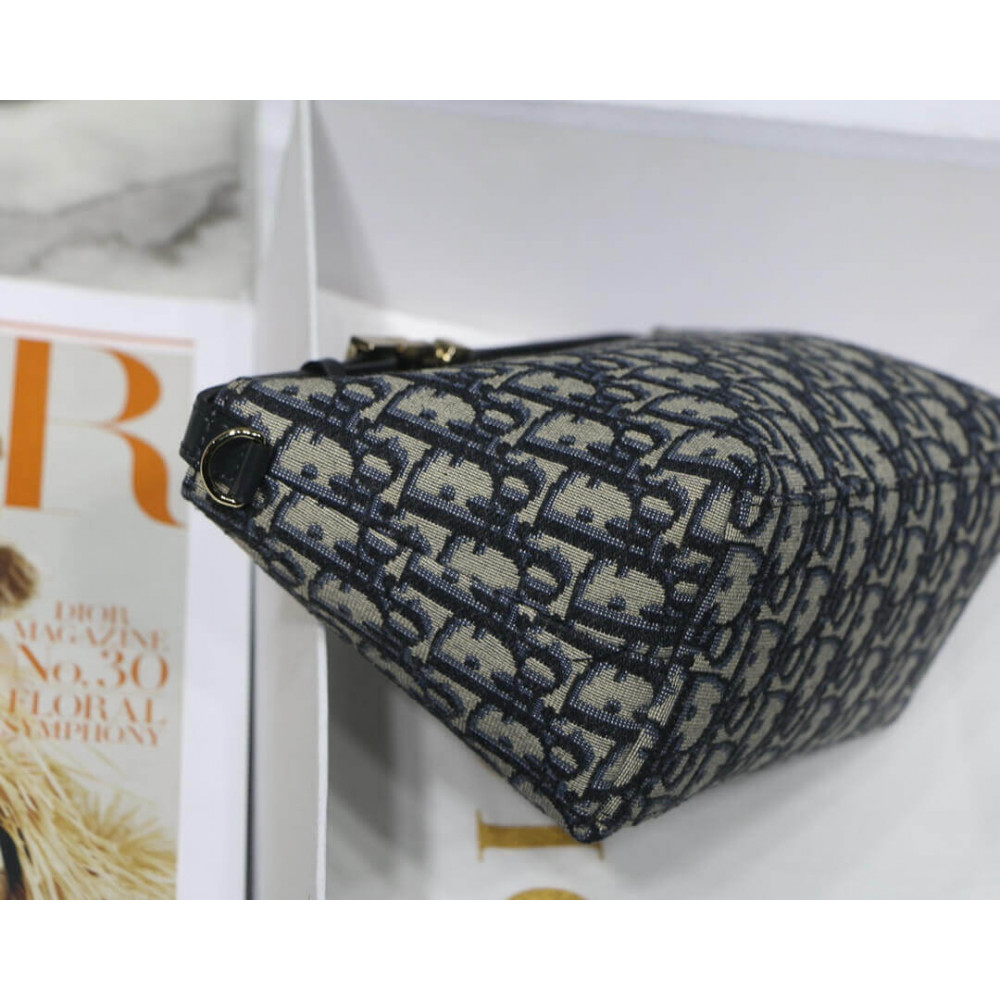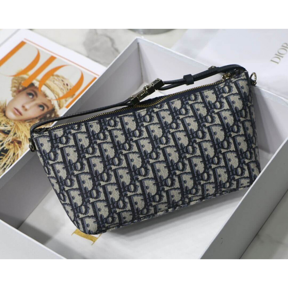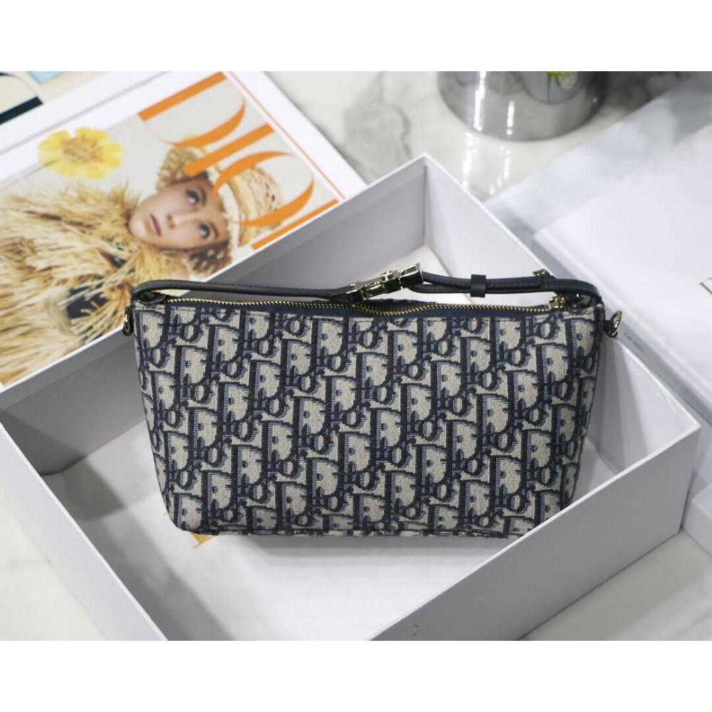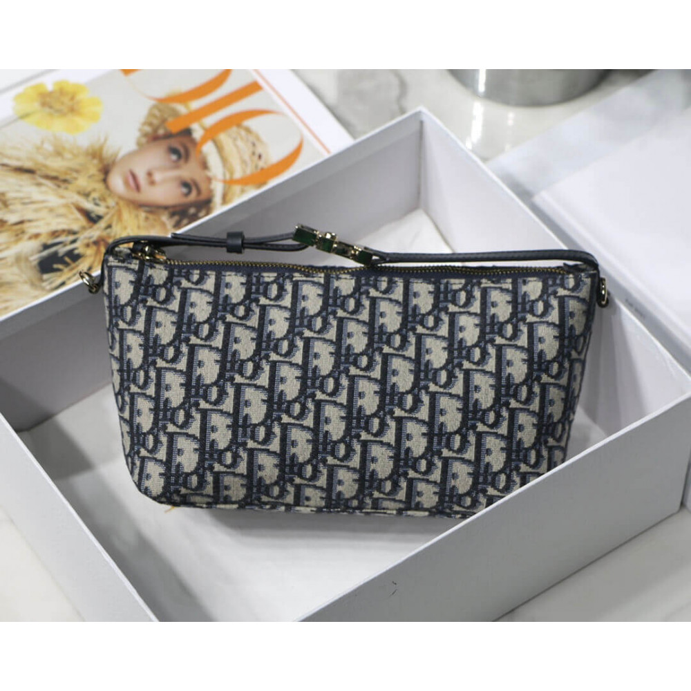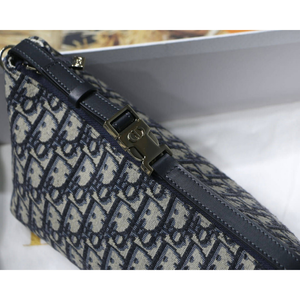 New this season, Maria Grazia Chiuri’s DiorTravel Nomad pouch is a modern hybrid design. Crafted in blue Dior Oblique motif, it stands out with a unique Macrocannage quilted effect, and a spacious and flexible form that will accommodate all the essentials. The medium style can be carried by hand or worn over the shoulder thanks to the top handle, complete with a military-inspired ruthenium-finish metal ‘CD’ buckle, while one of the House’s embroidered shoulder straps can be attached to the side rings.