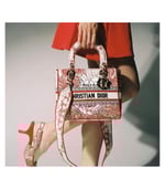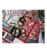 The Lady D-Lite bag, part of the Dioramour capsule, combines classic elegance with House modernity. The style is fully embroidered with a red and white D-Royaume d’Amour motif, inspired by the artist Pietro Ruffo. The front features a ‘CHRISTIAN DIOR’ signature while the thick ‘D.I.O.R.’ charms in pale gold-finish metal further enhance the silhouette. Equipped with a wide, reversible and removable embroidered shoulder strap, the medium Lady D-Lite bag can be carried by hand, worn over the shoulder or crossbody and may be coordinated with other Dioramour creations.