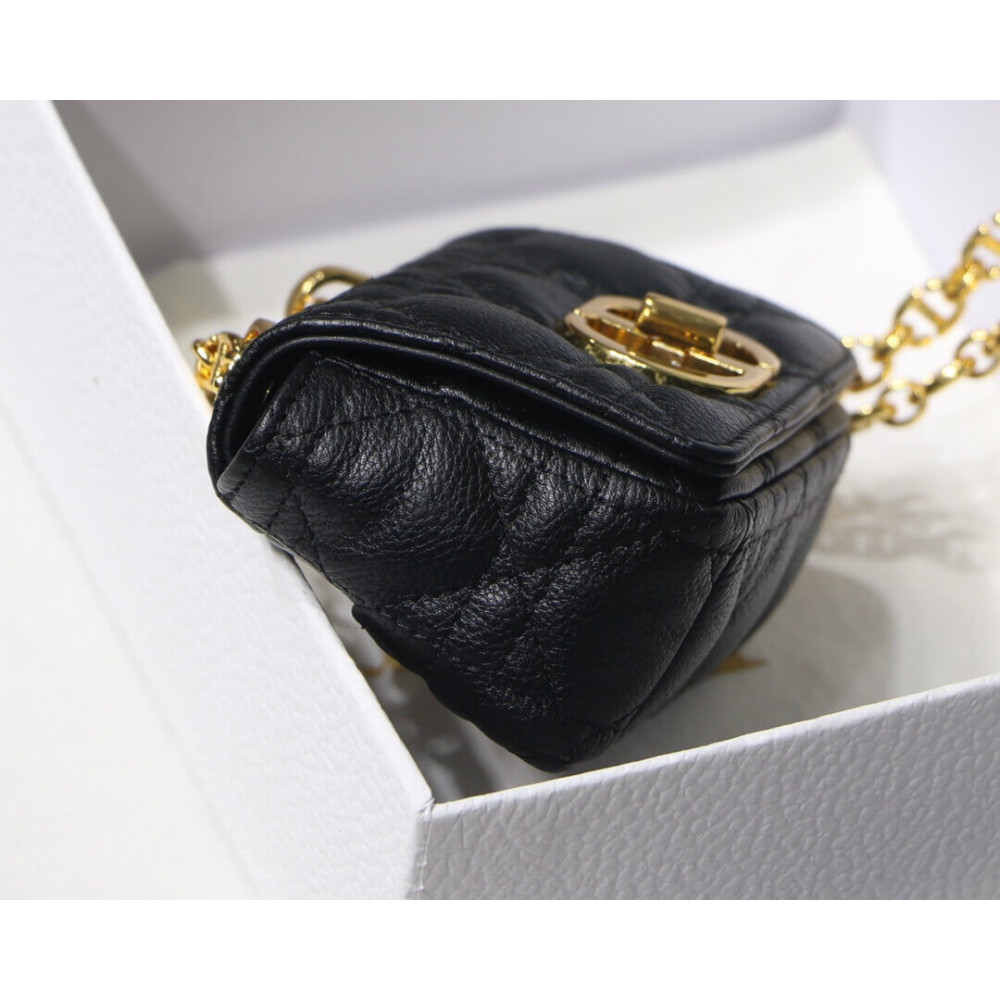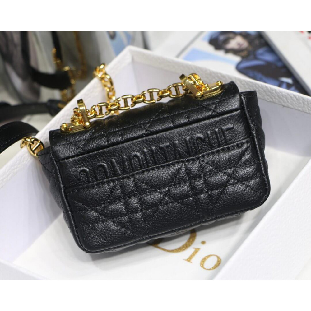 The Dior Caro bag is a creation that combines both modernity and timeless elegance. Crafted in tundra green supple calfskin with Cannage stitching, it features a flap adorned with a ‘CD’ clasp, inspired by the seal of a Christian Dior perfume bottle. The miniature shape’s removable chain shoulder strap has a leather insert that provides a comfortable and adjustable carry, to be worn with day or evening attire.
