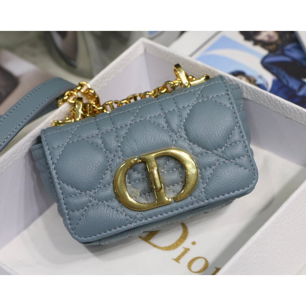 Christian Dior Micro Caro Bag Cloud Blue Supple Cannage Calfskin