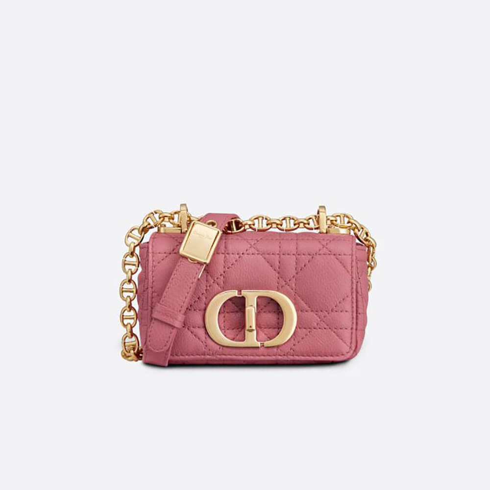 Christian Dior Micro Caro Bag Yarrow Pink Supple Cannage Calfskin