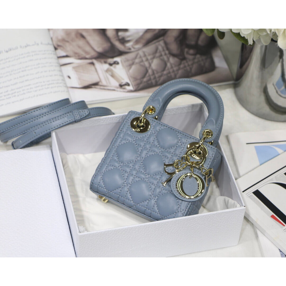 Christian Dior Micro Lady Dior Bag Cloud Blue Cannage Lambskin