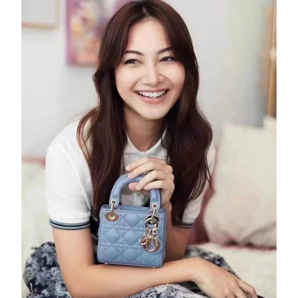 Home Shop All Bags Dior Christian Dior Micro Lady Dior Bag Cloud Blue Cannage Lambskin