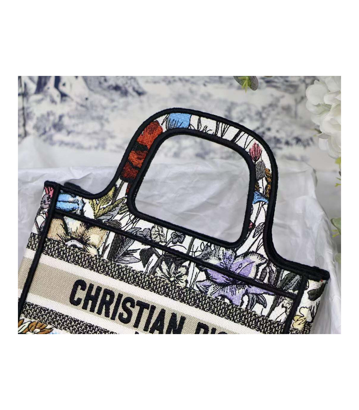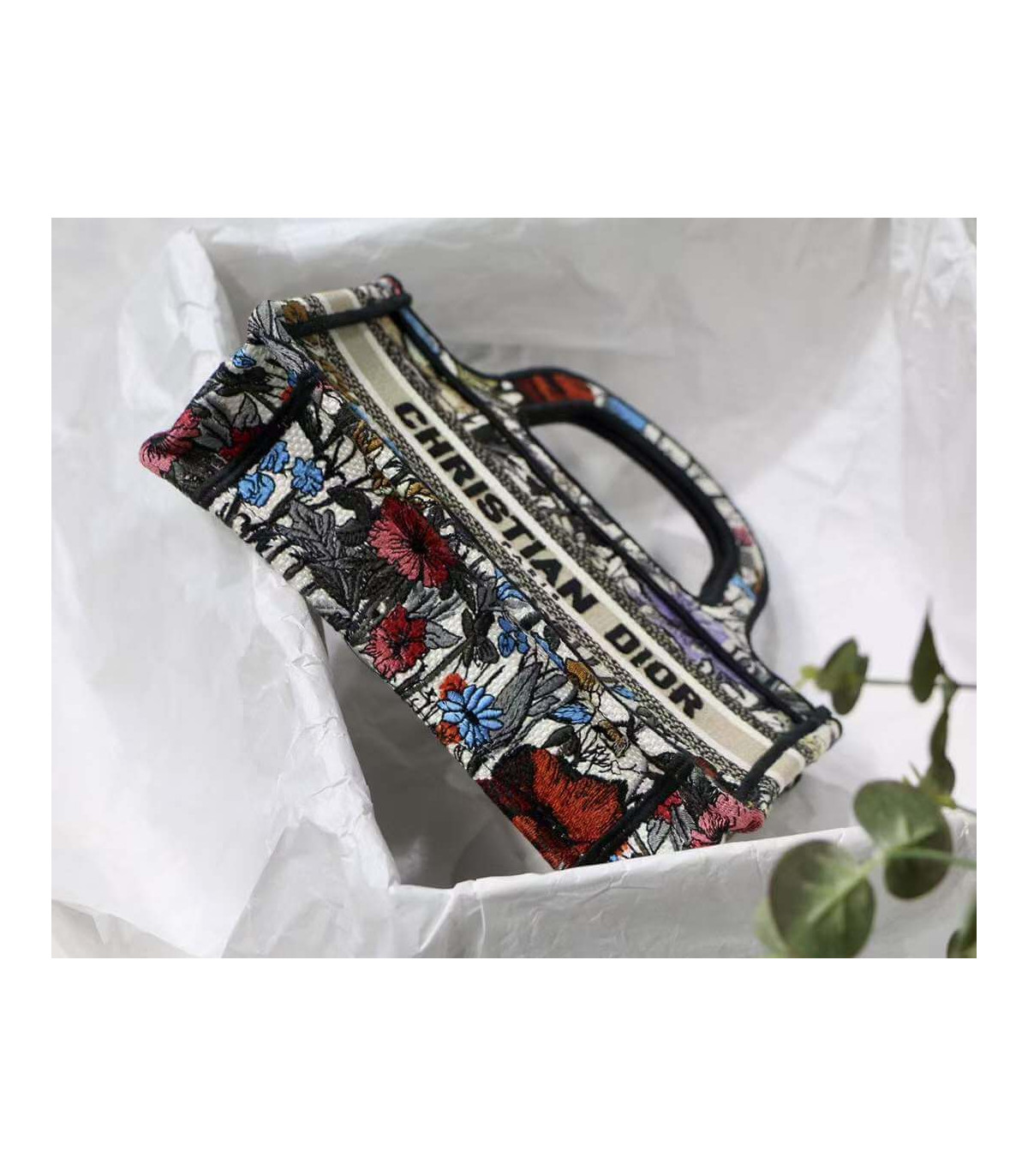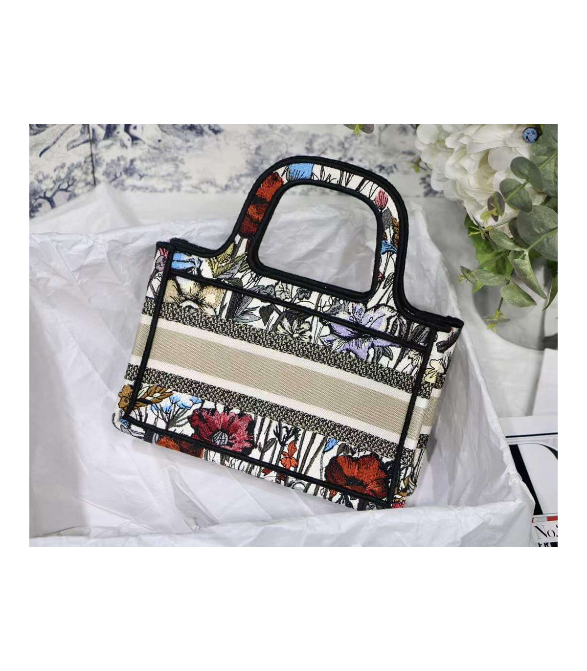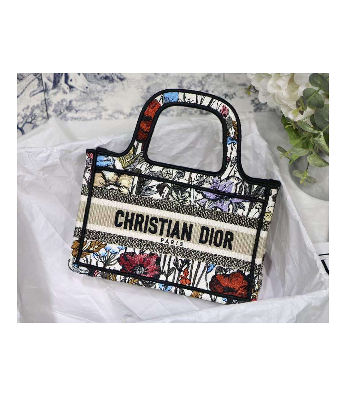 Christian Dior Mini Book Tote Multicolor Mille Fleurs Embroidery