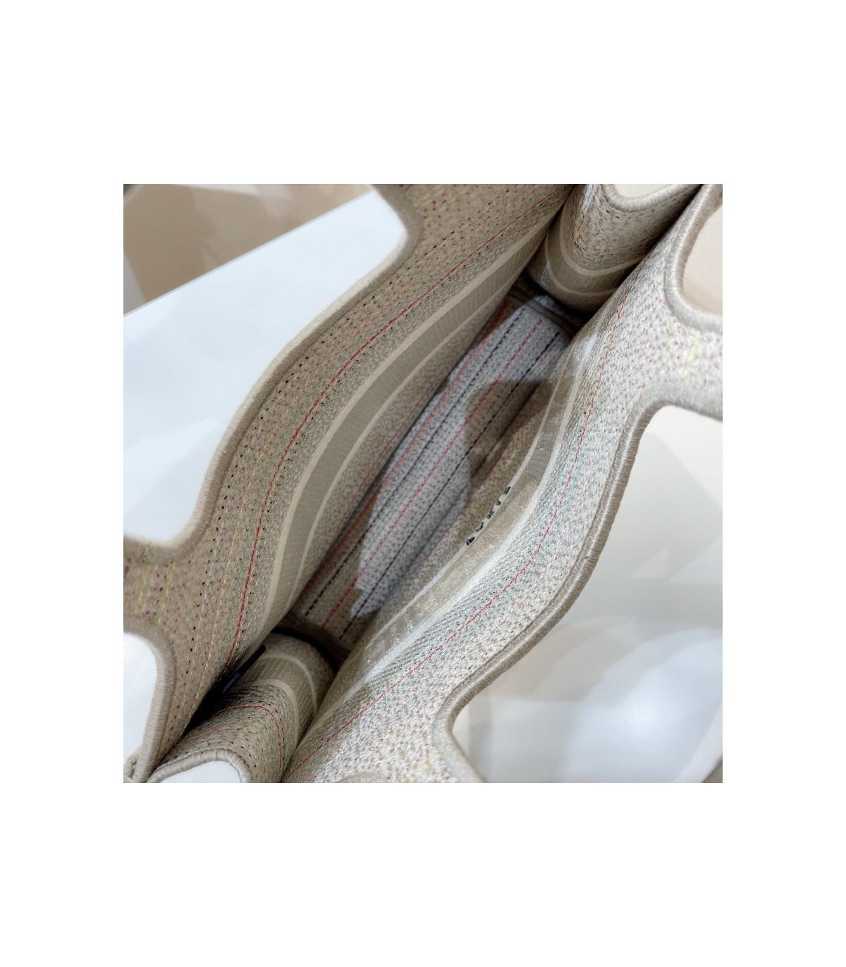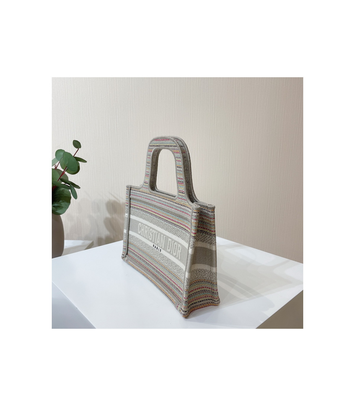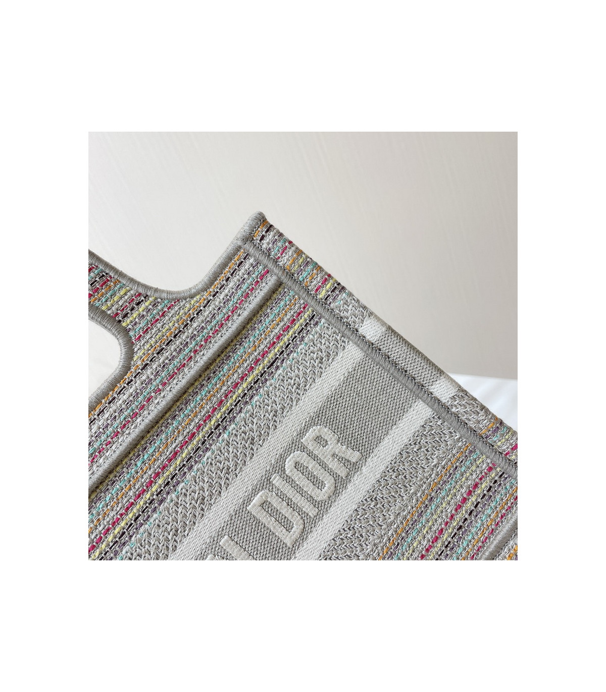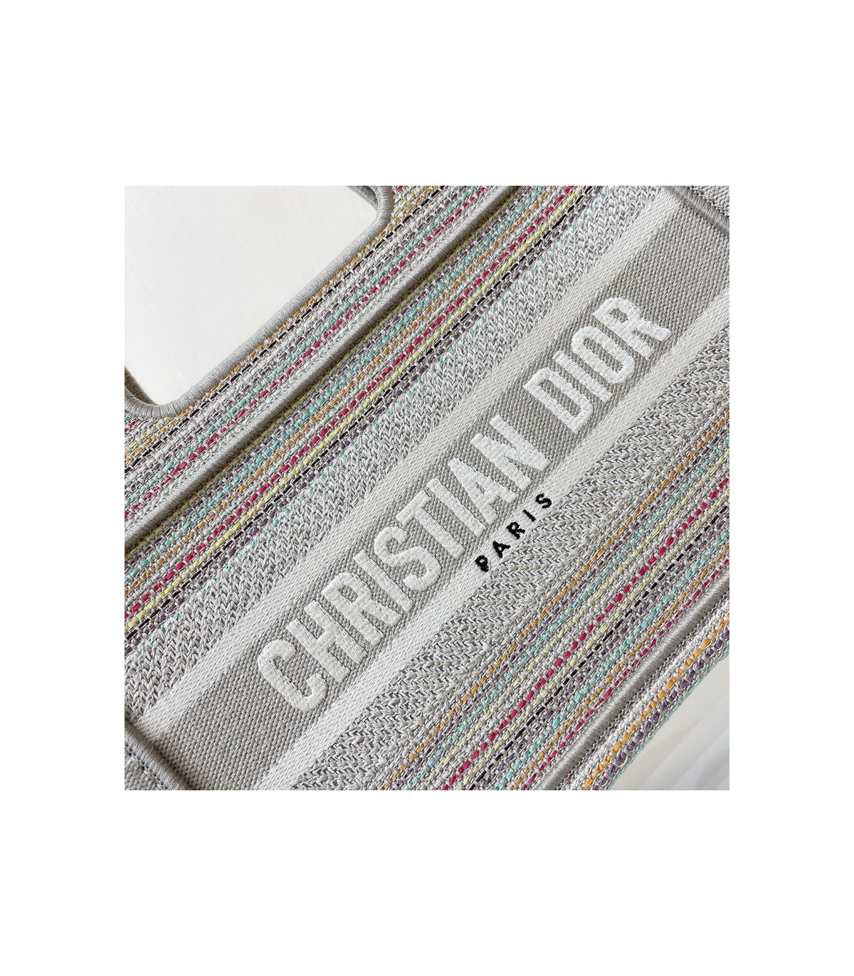 A Maria Grazia Chiuri creation, the Dior Book Tote has become an essential of the Dior aesthetic. Part of the Dior Or capsule collection, this miniature version is entirely embroidered with thin multicolor pastel-colored stripes. Featuring the ‘Christian Dior’ signature on the front, the Mini Dior Book Tote is a prime example of House savoir-faire and can be coordinated with other Dior Or creations.