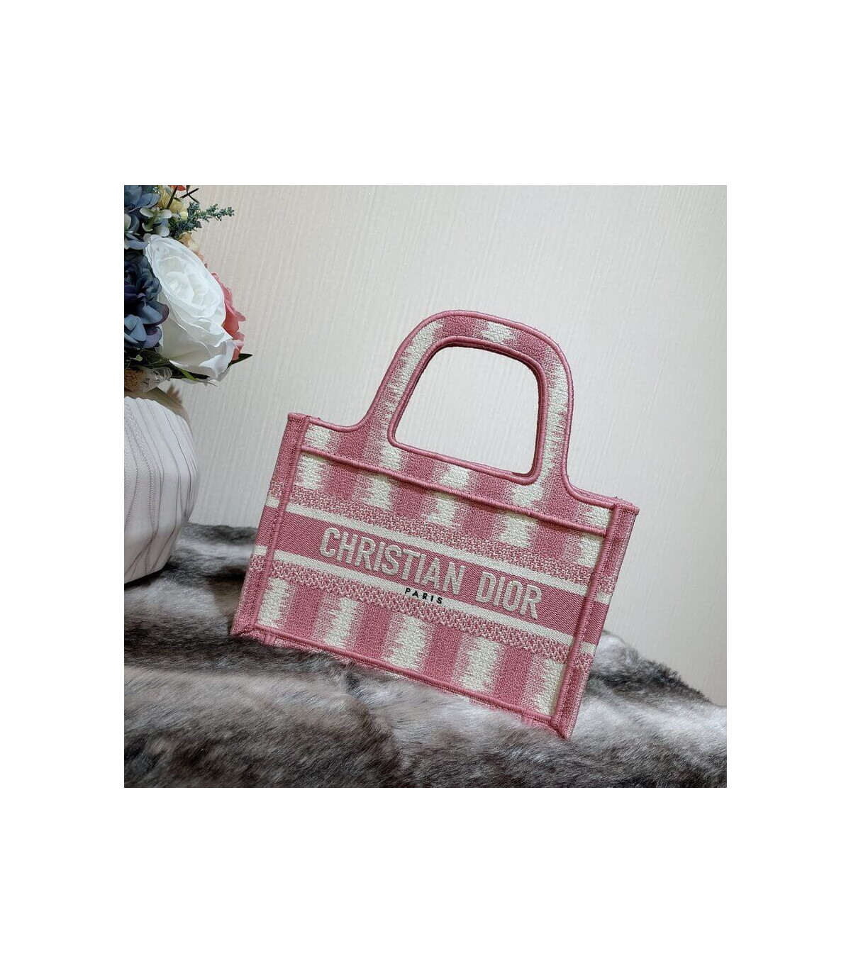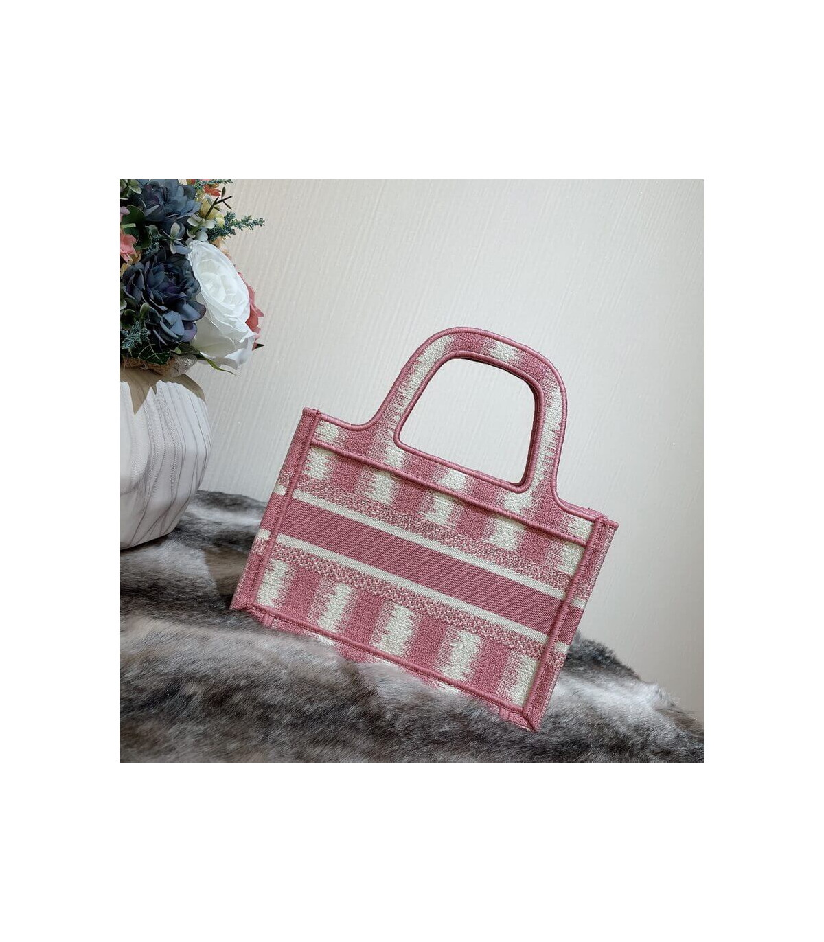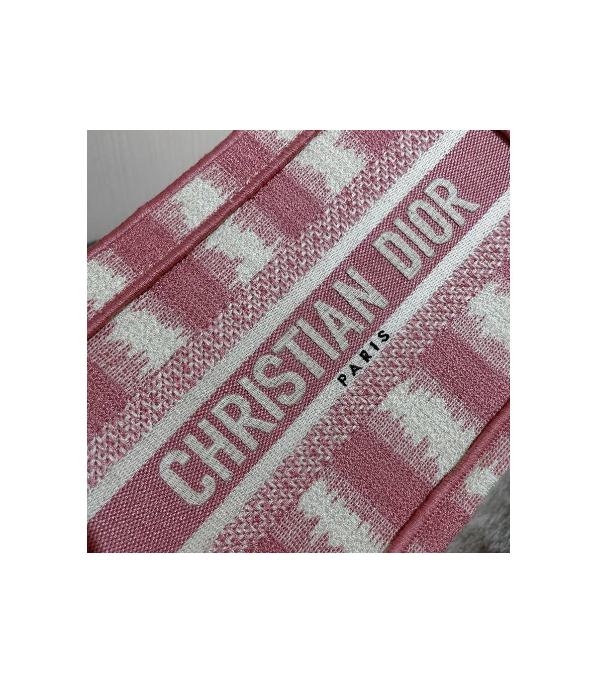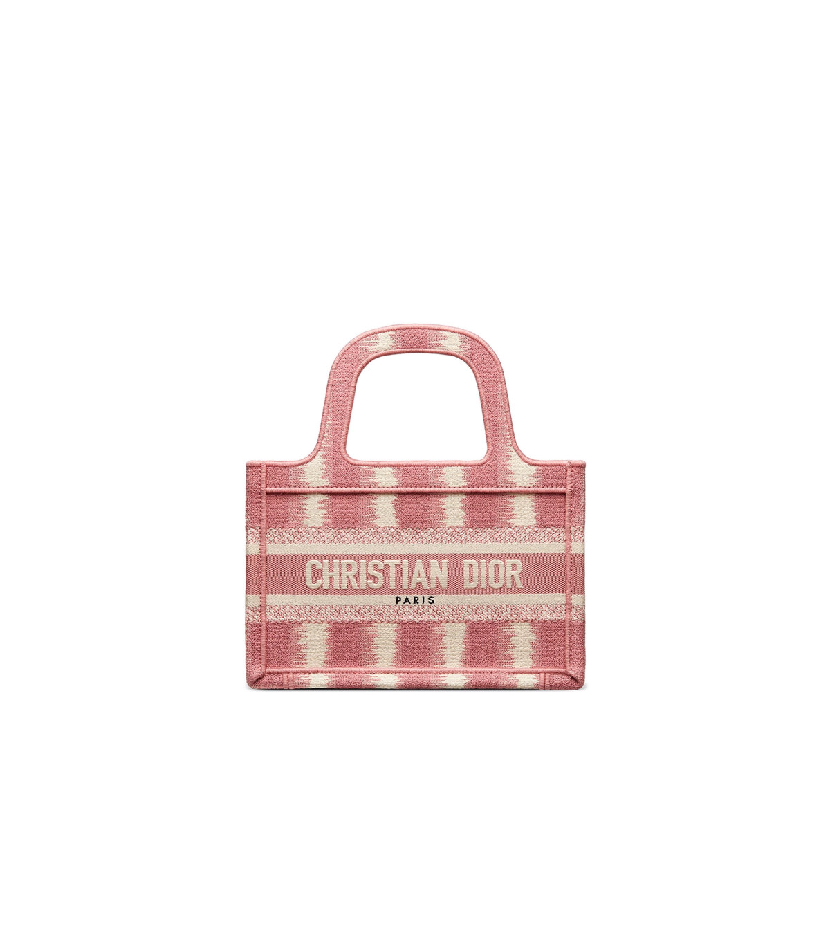 A Maria Grazia Chiuri creation, the Dior Book Tote has become an essential of the Dior aesthetic. This miniature version reimagines the bayadère motif in a modern variation and is entirely embroidered with the pink heathered-effect D-Stripes motif. Featuring the ‘Christian Dior’ signature on the front, the Mini Dior Book Tote is a prime example of House savoir-faire.