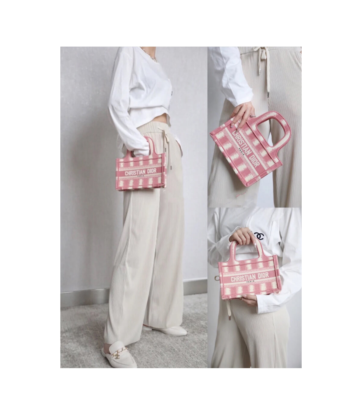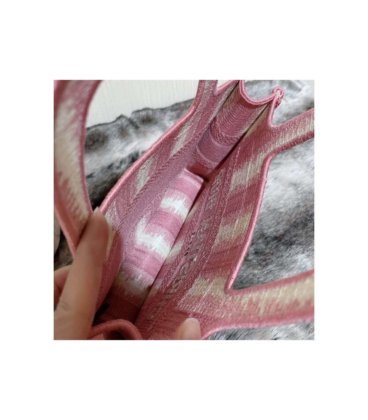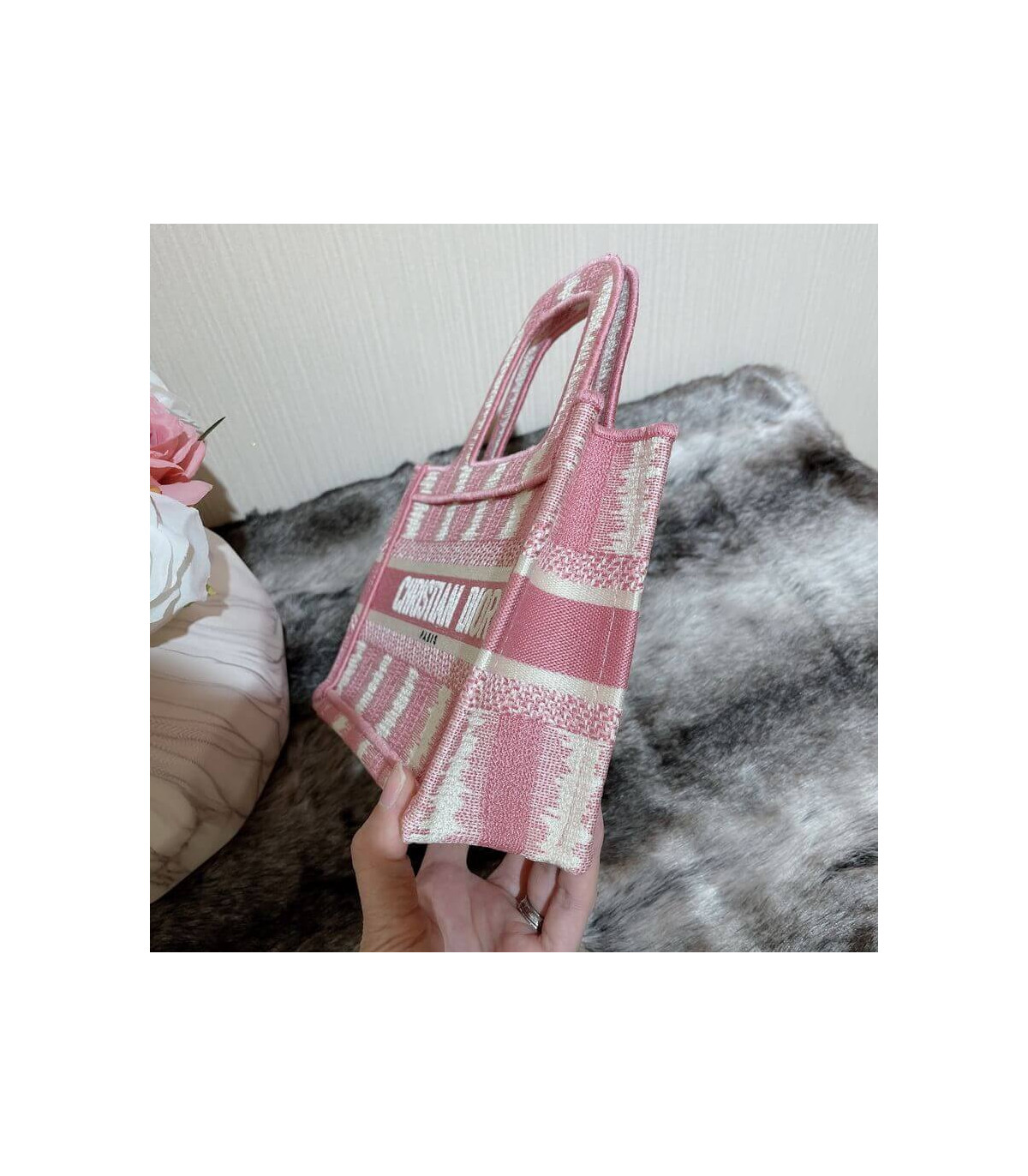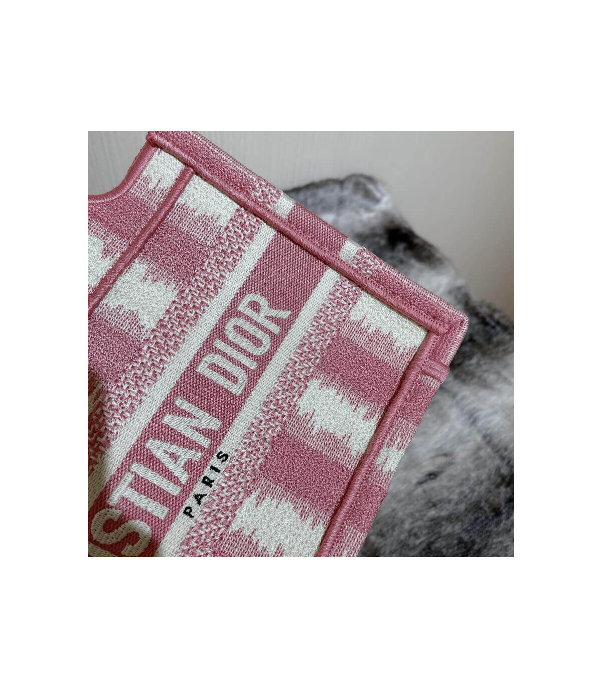 A Maria Grazia Chiuri creation, the Dior Book Tote has become an essential of the Dior aesthetic. This miniature version reimagines the bayadère motif in a modern variation and is entirely embroidered with the pink heathered-effect D-Stripes motif. Featuring the ‘Christian Dior’ signature on the front, the Mini Dior Book Tote is a prime example of House savoir-faire.