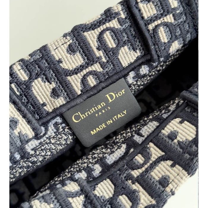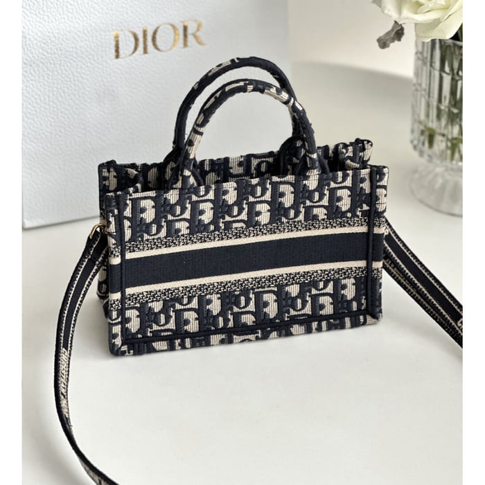 Home Shop All Bags Dior Christian Dior Mini Book Tote With Strap Blue and Beige Oblique Embroidery S5573