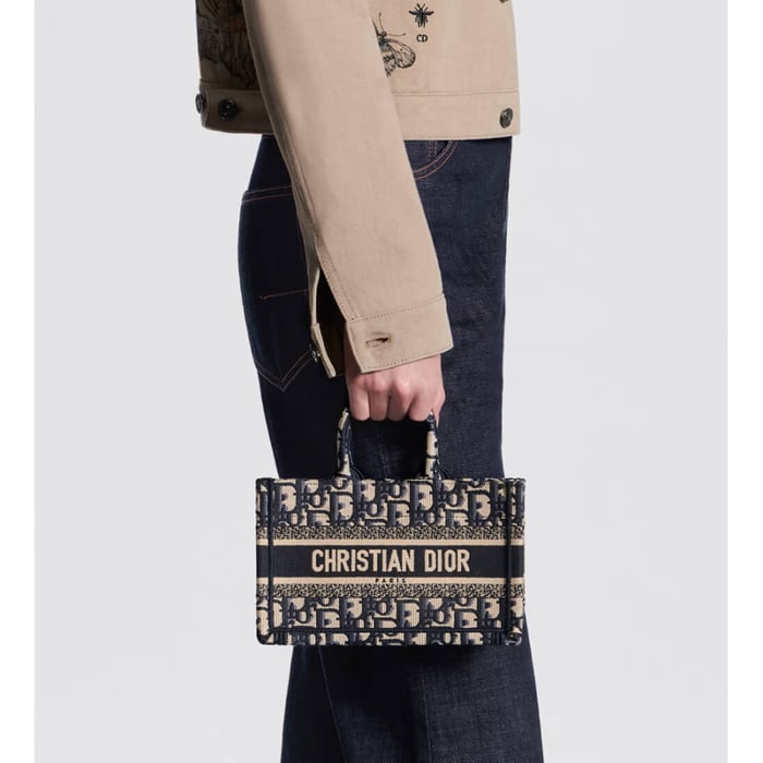 New for the Cruise 2024 collection designed by Maria Grazia Chiuri, the miniature tote elevates the iconic Dior Book Tote line. Fully embroidered with the House’s hallmark blue and beige Dior Oblique motif, it showcases the Christian Dior Paris signature. Embodying Dior’s savoir-faire, the Dior Book Tote is equipped with an adjustable and removable strap that allows it to be carried by hand, worn over the shoulder or crossbody.