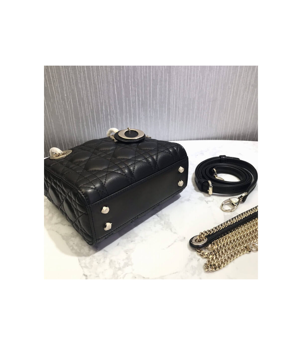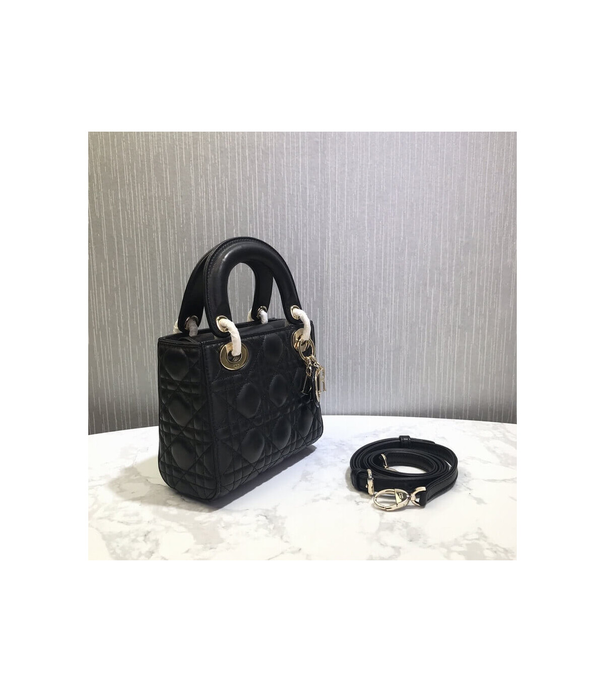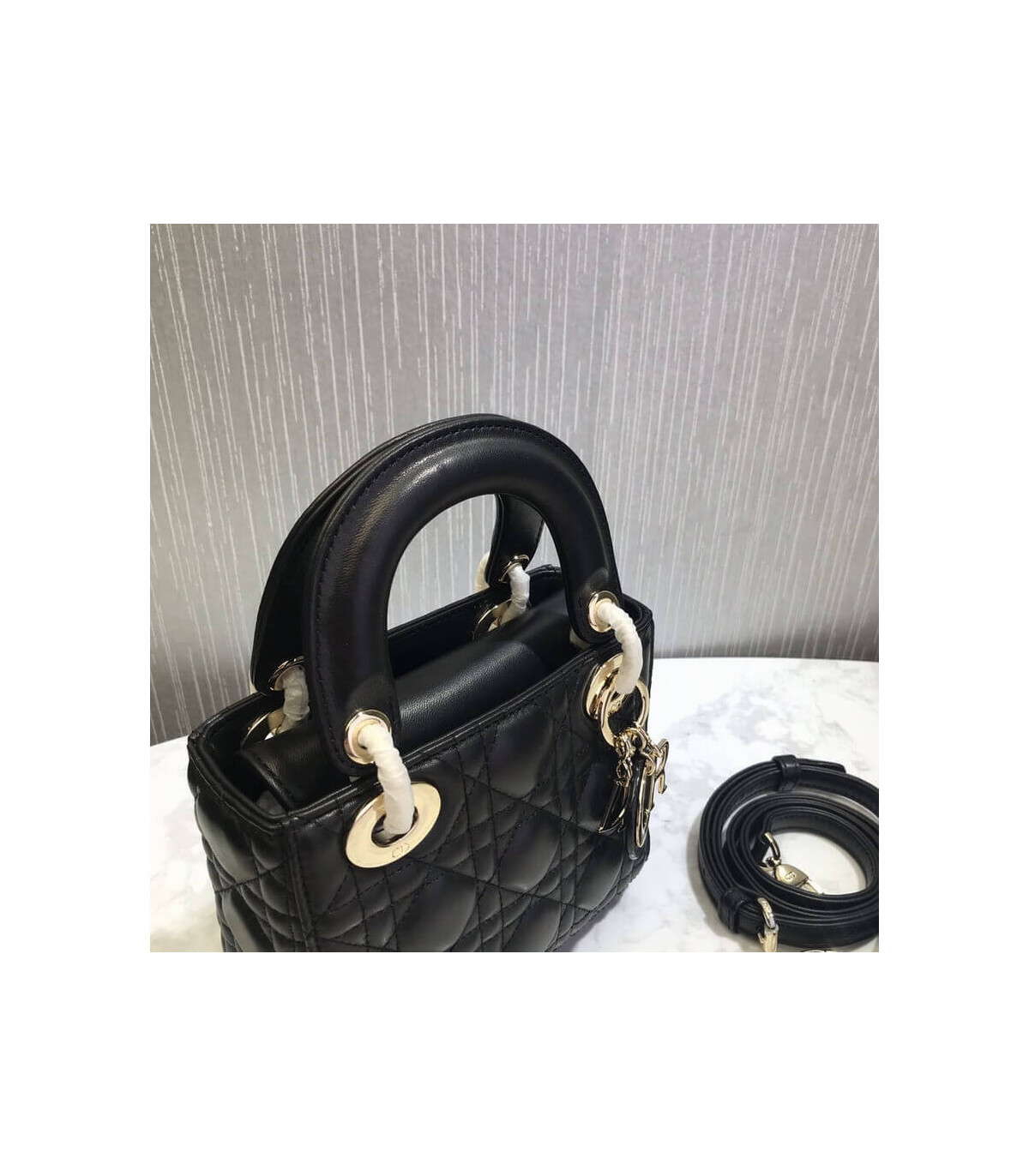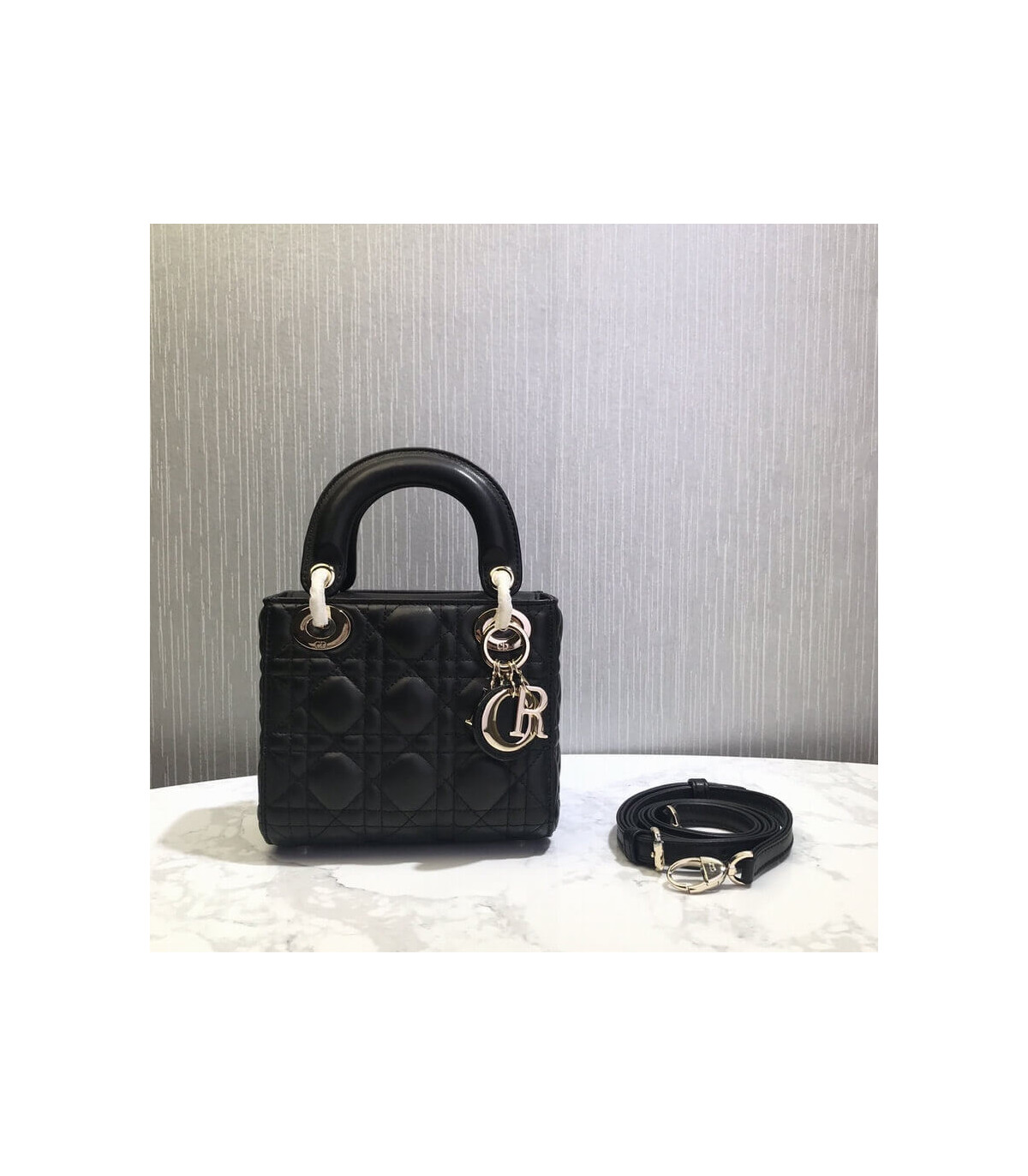 The Lady Dior bag epitomizes Dior’s vision of elegance and beauty. Sleek and refined, the timeless yet relevant style is crafted in peach blossom pink lambskin with Cannage stitching, creating the instantly recognizable quilted texture. The tonal enamel ‘D.I.O.R.’ charms lend a polished touch to the style. Featuring a removable chain shoulder strap, the miniature style can be carried by hand and is the ideal evening companion.
