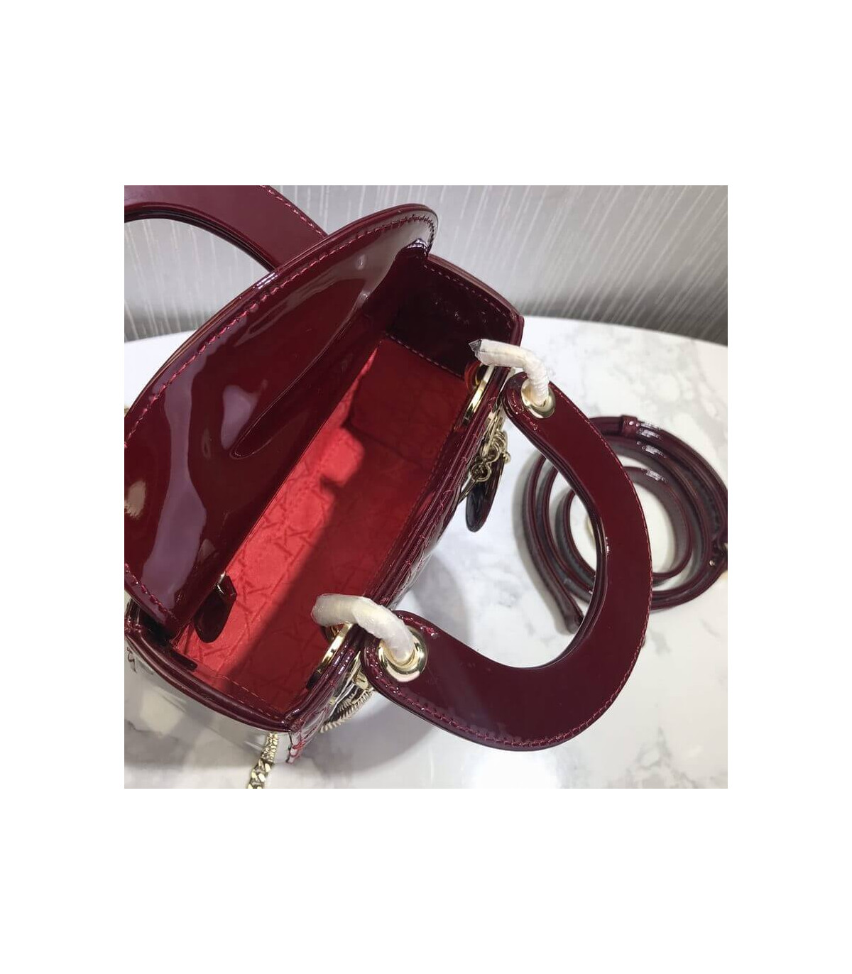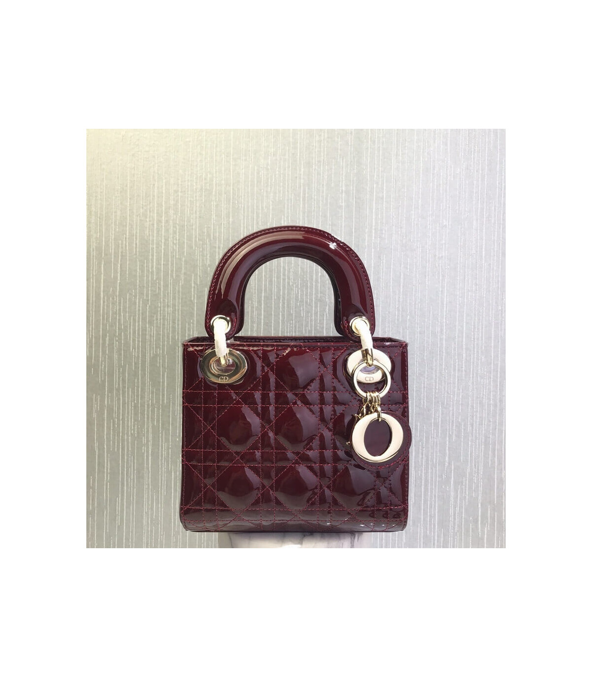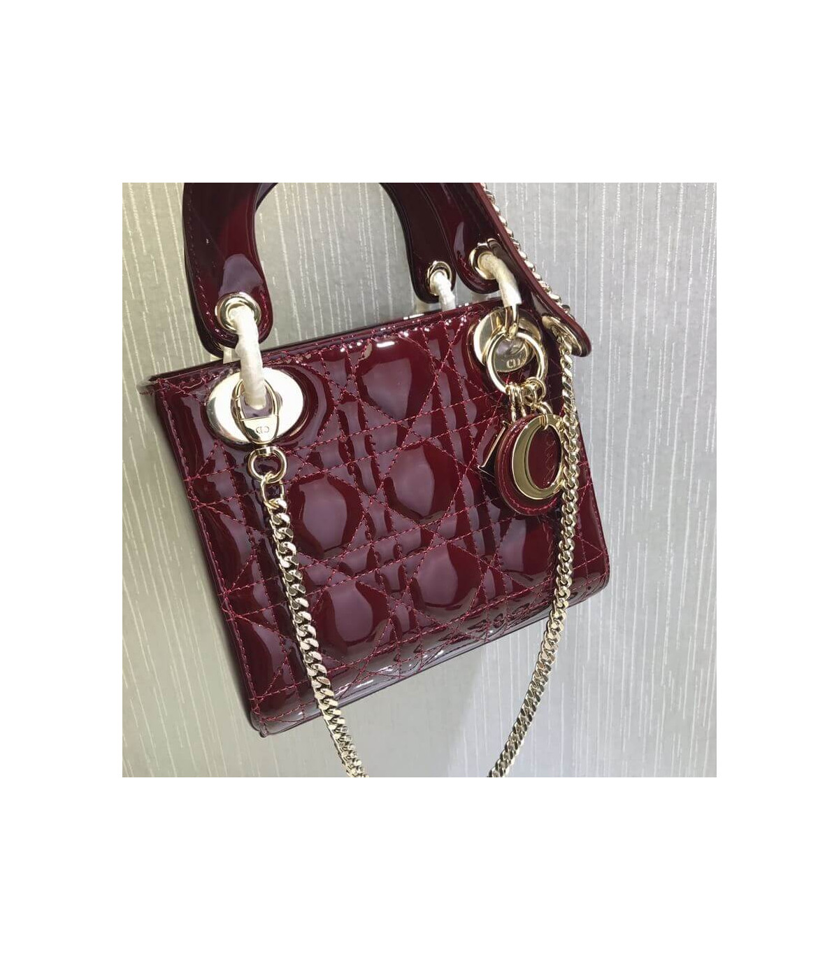Home Shop All Bags Dior Christian Dior Mini Lady Dior Bag Burgundy Patent Cannage Calfskin