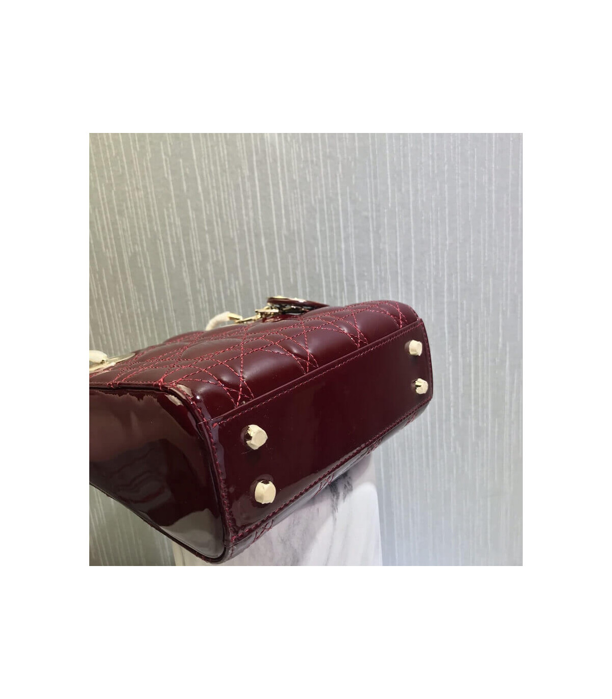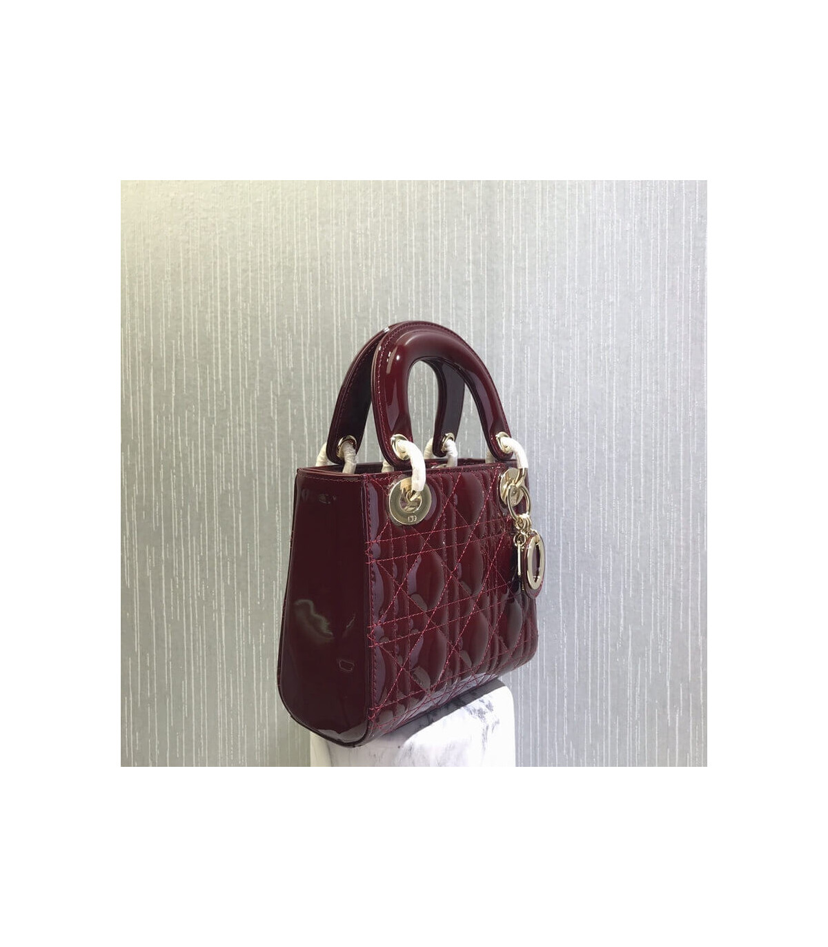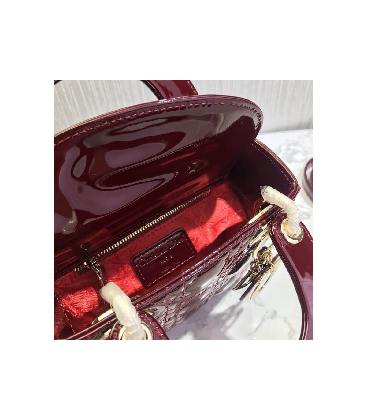Home Shop All Bags Dior Christian Dior Mini Lady Dior Bag Burgundy Patent Cannage Calfskin