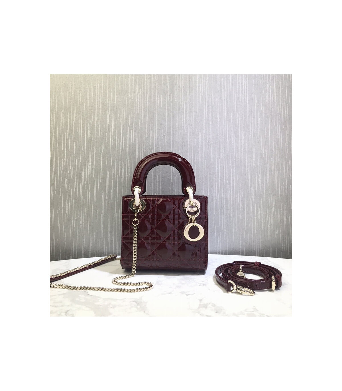 Christian Dior Mini Lady Dior Bag Burgundy Patent Cannage Calfskin
