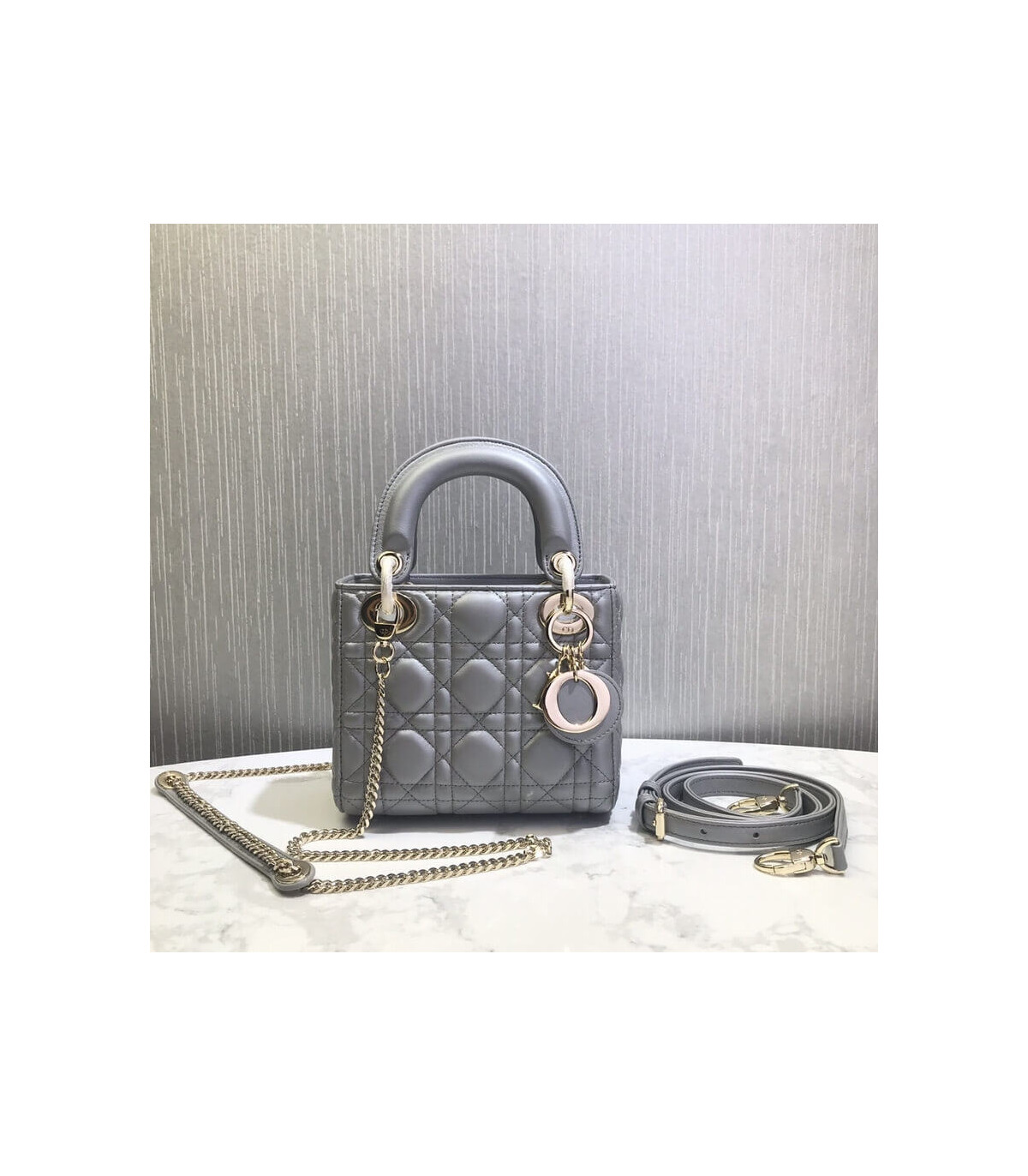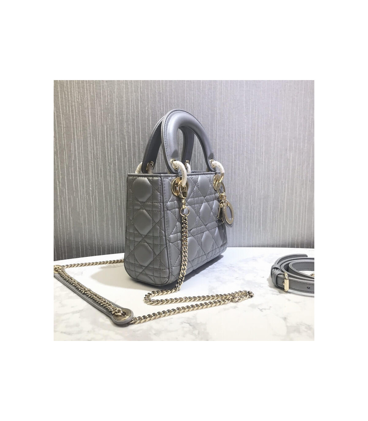 Christian Dior Mini Lady Dior Bag Grey Cannage Lambskin
