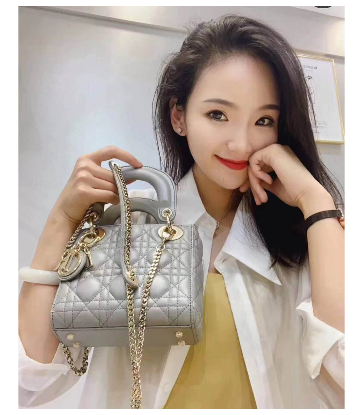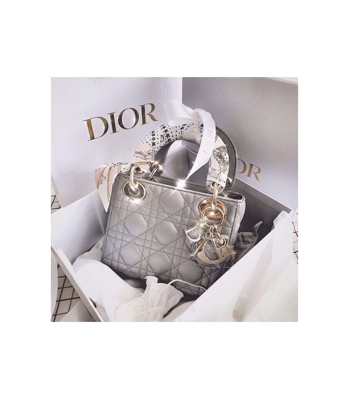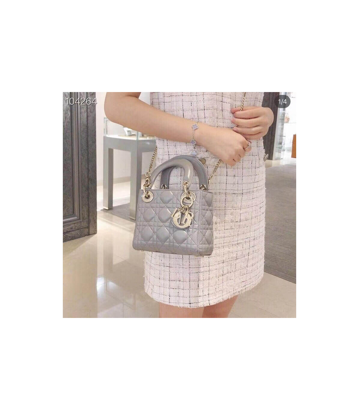 Home Shop All Bags Dior Christian Dior Mini Lady Dior Bag Grey Cannage Lambskin