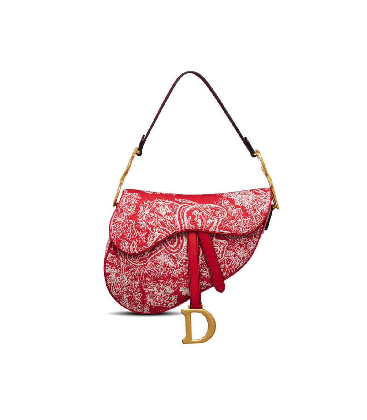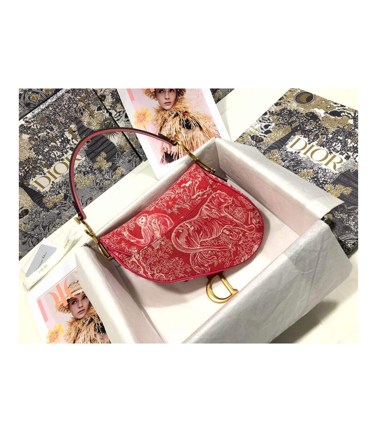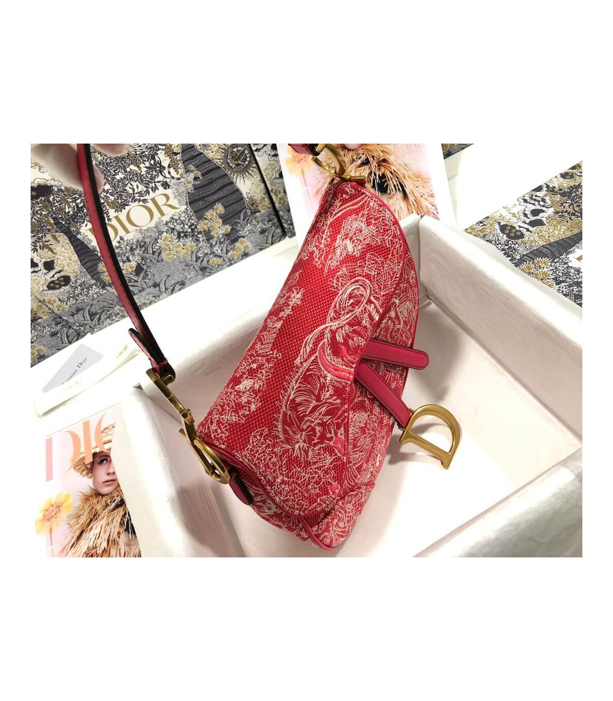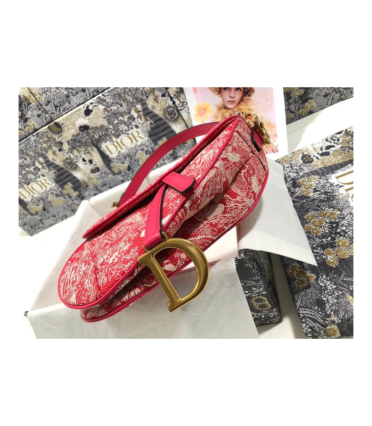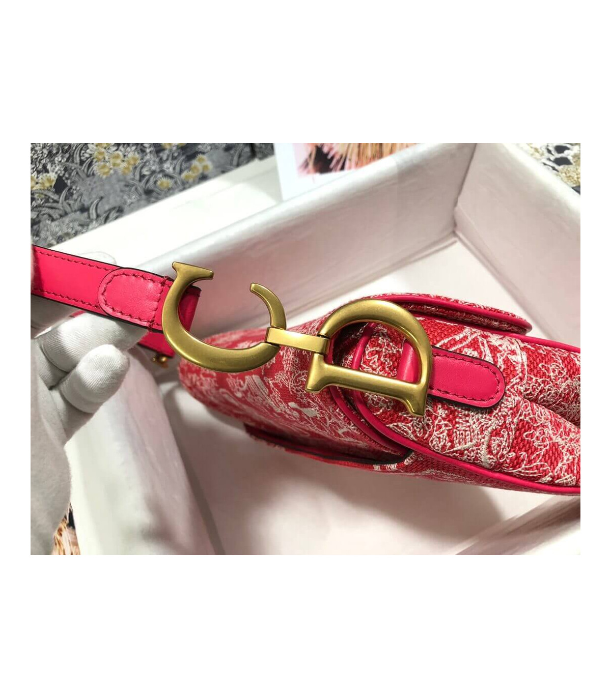 Christian Dior Saddle Bag Raspberry Toile de Jouy Reverse Jacquard