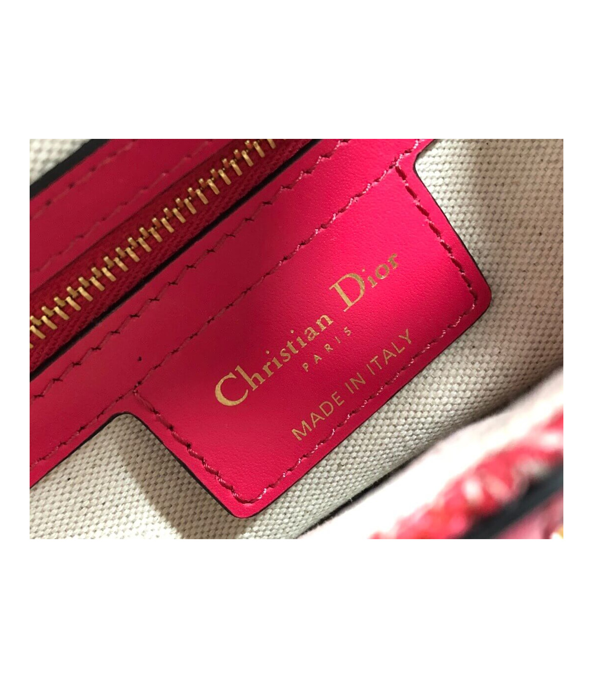 Christian Dior Medium Lady D-Lite Bag Red and White D-Royaume d’Amour Embroidery