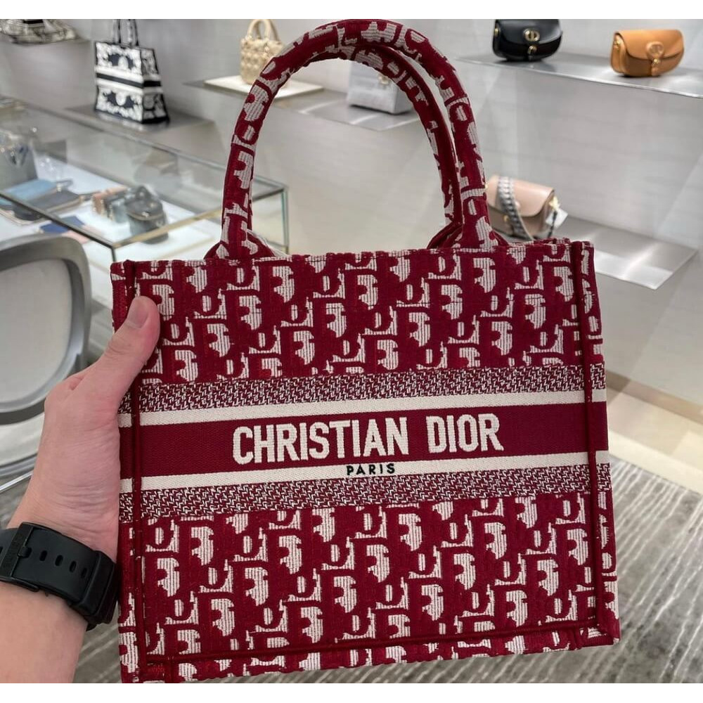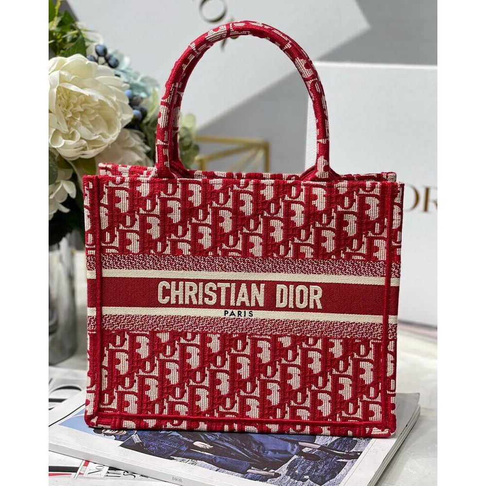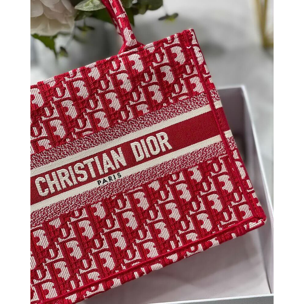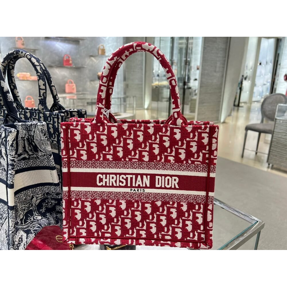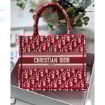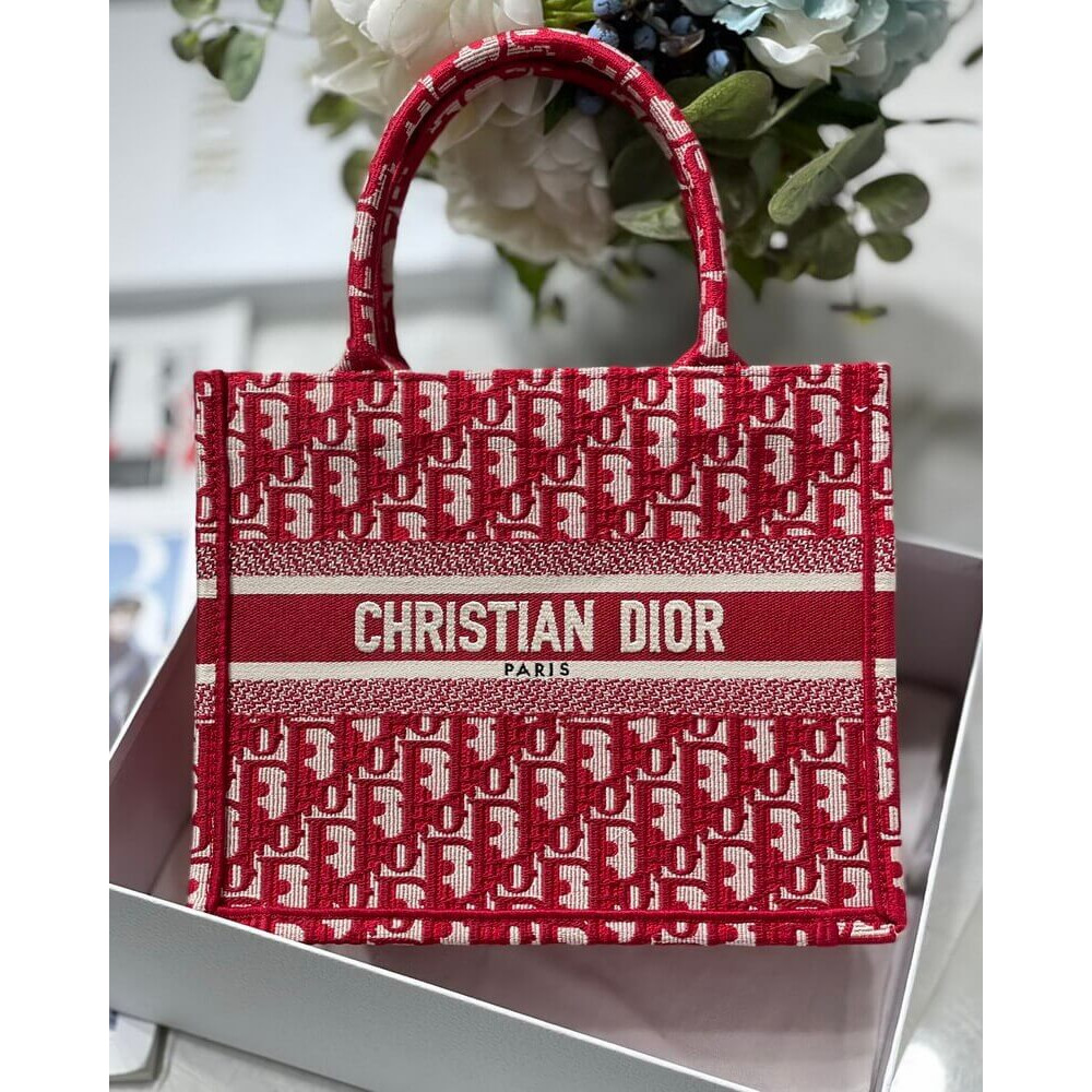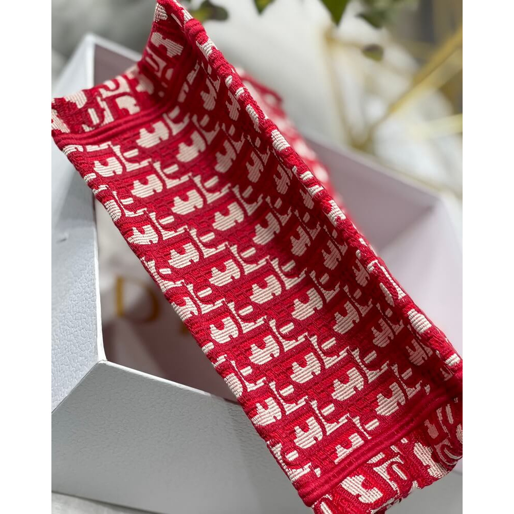 Christian Dior Small Book Tote Bag 26cm Oblique Embroidery Red