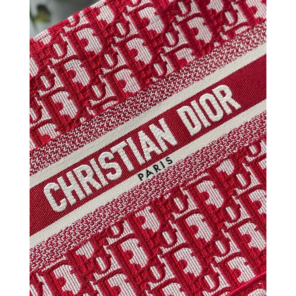 Home Shop All Bags Dior Christian Dior Small Book Tote Bag 26cm Oblique Embroidery Red