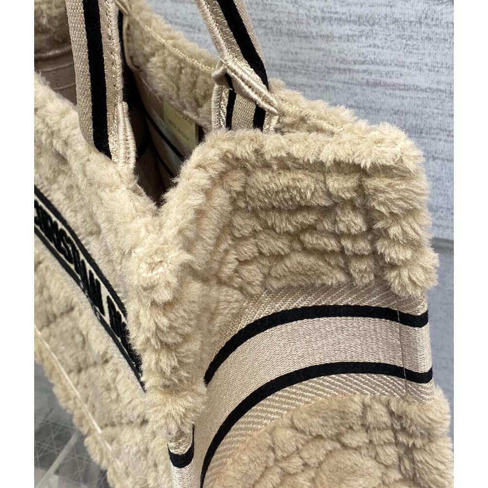Introduced by Maria Grazia Chiuri, Dior’s Creative Director, the Dior Book Tote has become a staple of the Dior aesthetic. Designed to hold all the daily essentials, the beige shearling style is fully embroidered with the hallmark Cannage motif, and is adorned with the ‘CHRISTIAN DIOR PARIS’ signature on the front. Exemplifying the House’s signature savoir-faire, the large tote may be carried by hand or worn over the shoulder.
