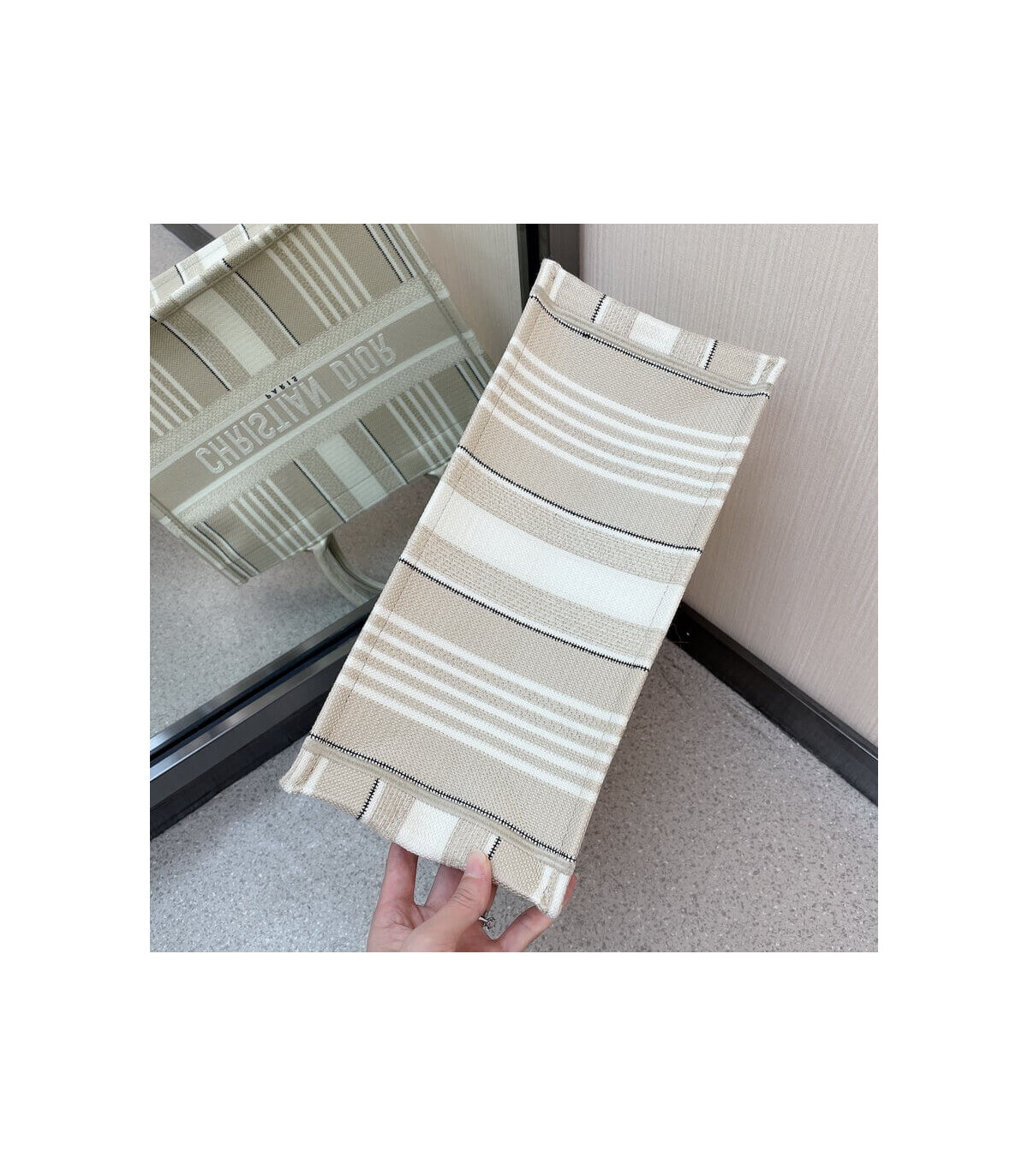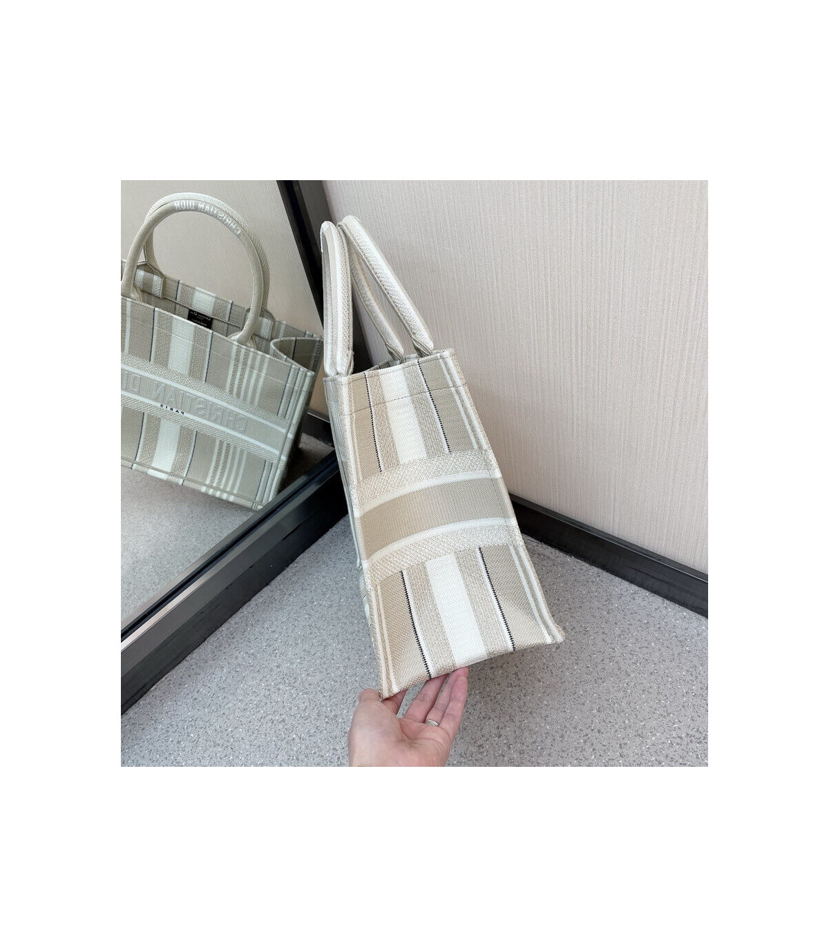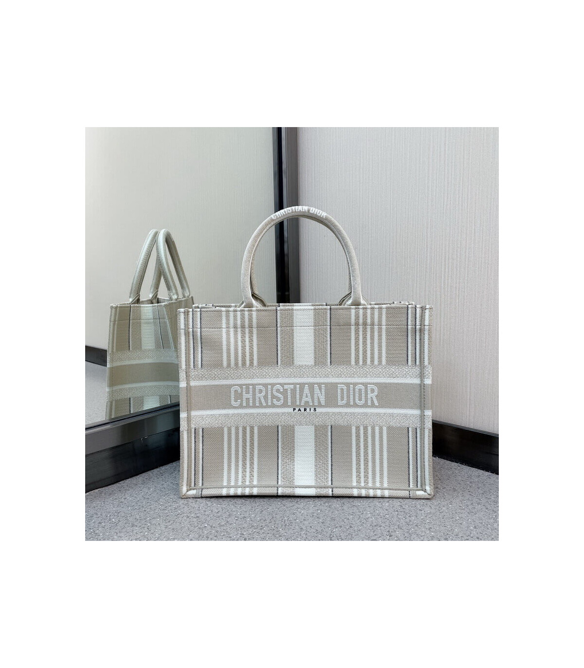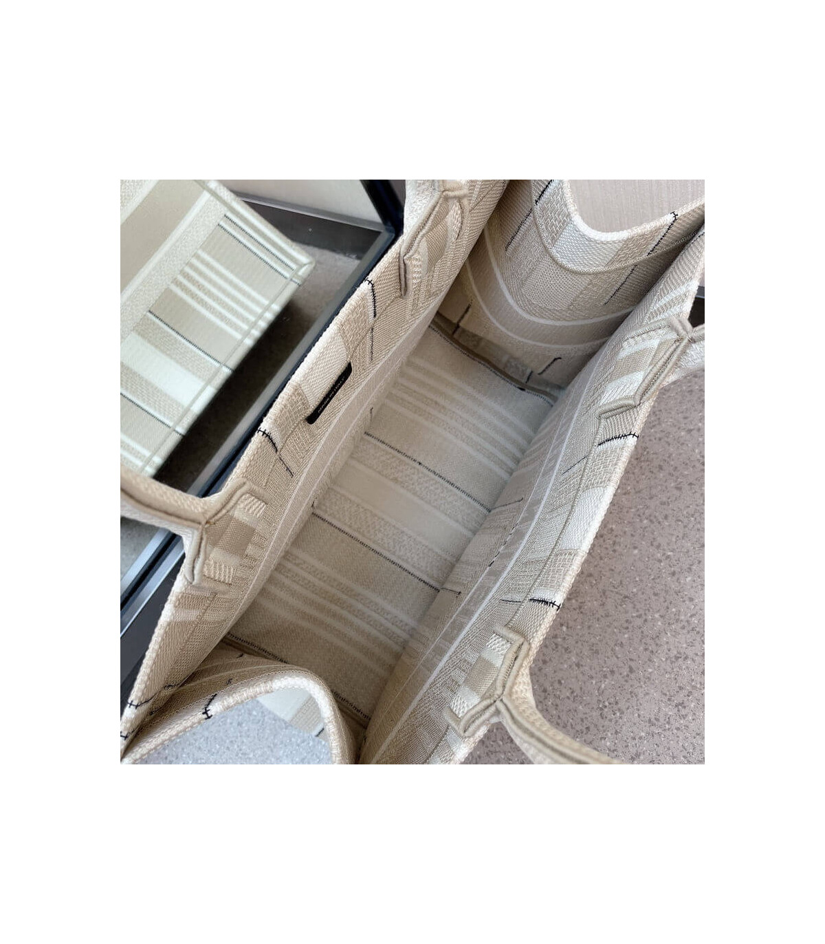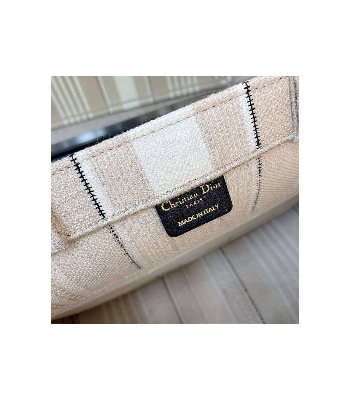 The Dior Book Tote is one of Creative Director Maria Grazia Chiuri’s original designs, and is now a House classic. Designed to hold all the daily essentials, this beige style is fully embroidered with tonal stripes. Adorned with a ‘Christian Dior’ signature on the front, the Dior Book Tote exemplifies the House’s signature savoir-faire.