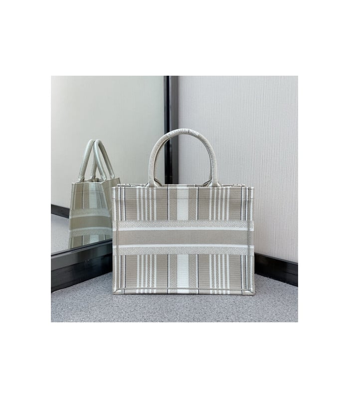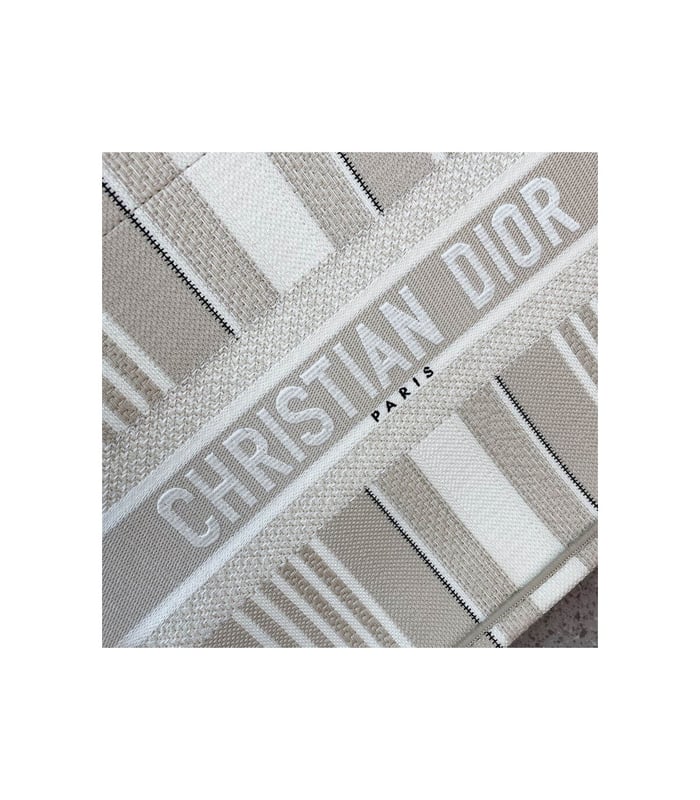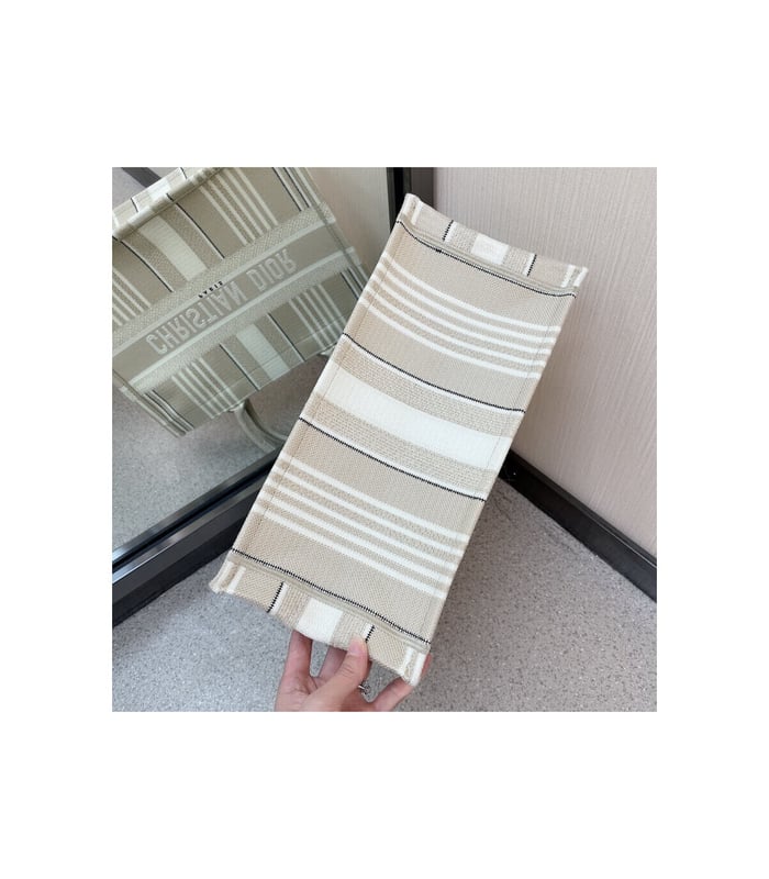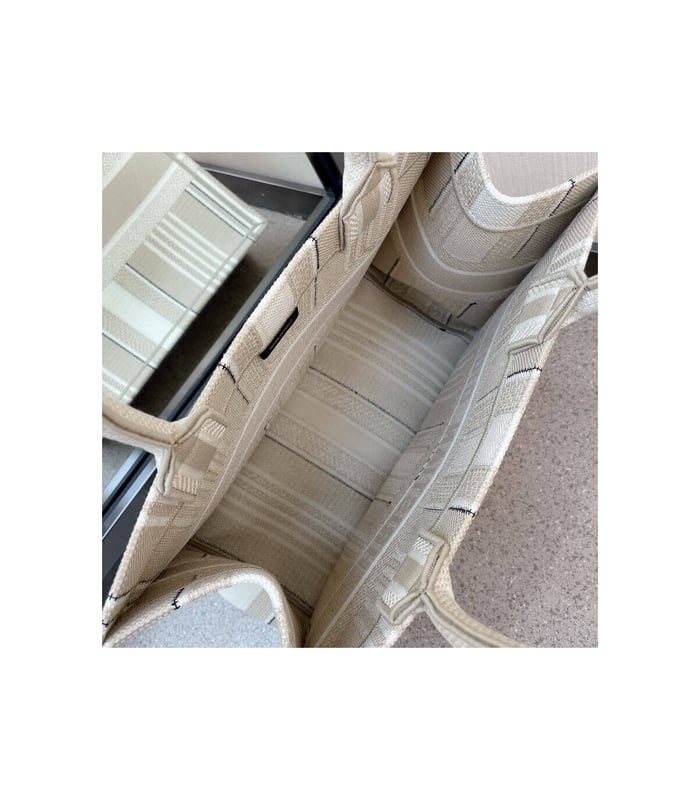 Christian Dior Small Book Tote Beige Stripes Embroidery