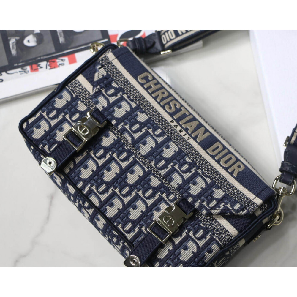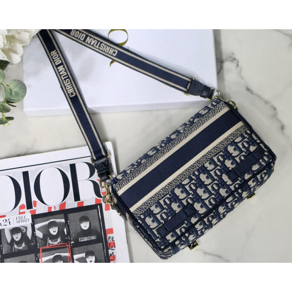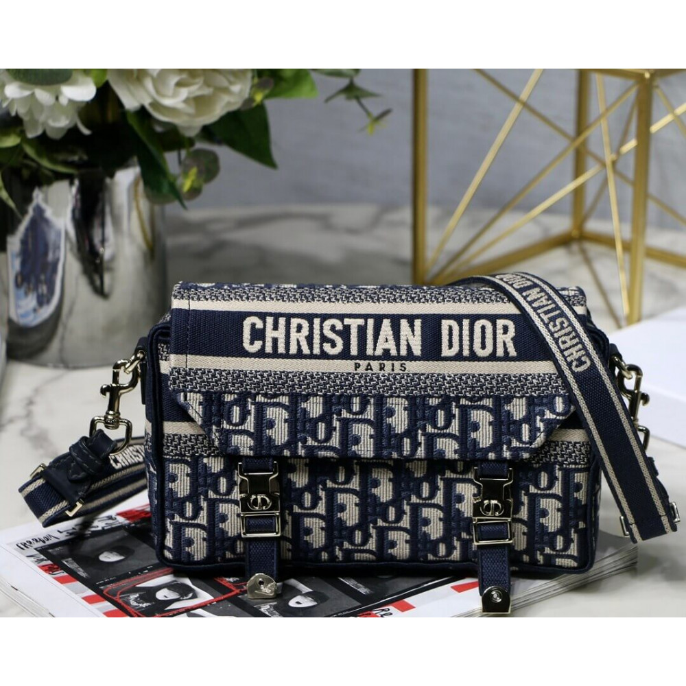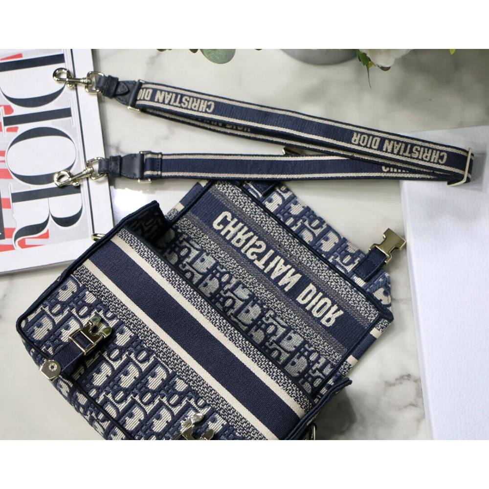 Maria Grazia Chiuri has updated the classic messenger bag by adding signature Dior details for a relaxed and modern look. Fully embroidered with the blue Dior Oblique motif, the bag is enhanced by a ‘CHRISTIAN DIOR PARIS’ signature flap, as well as sportswear-inspired ‘CD’ buckles. Equipped with an adjustable and removable shoulder strap, the small, compact messenger bag can be worn over the shoulder or crossbody, and will make an ideal urban companion.