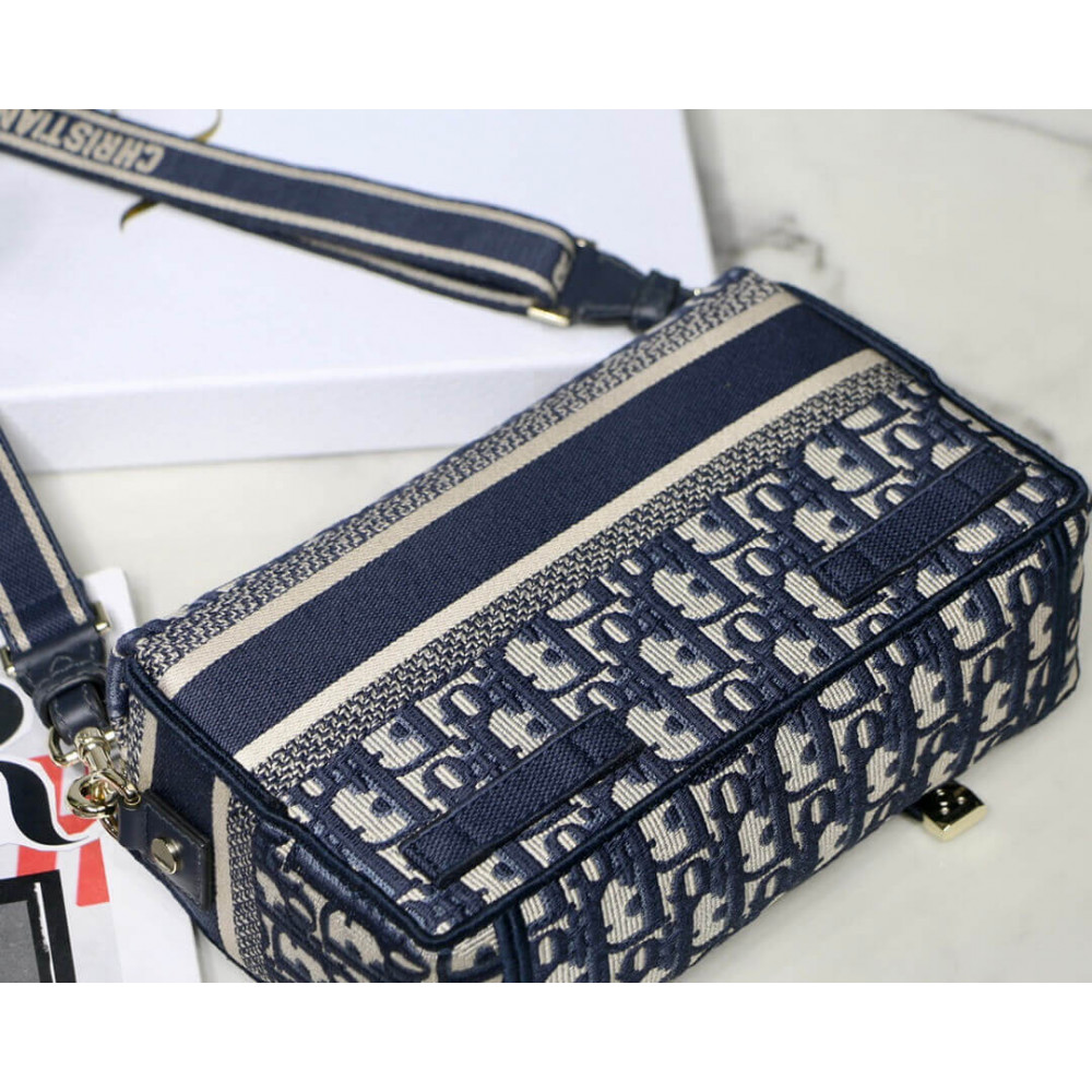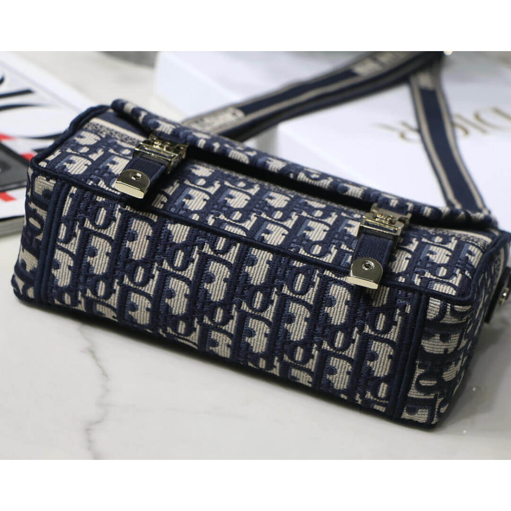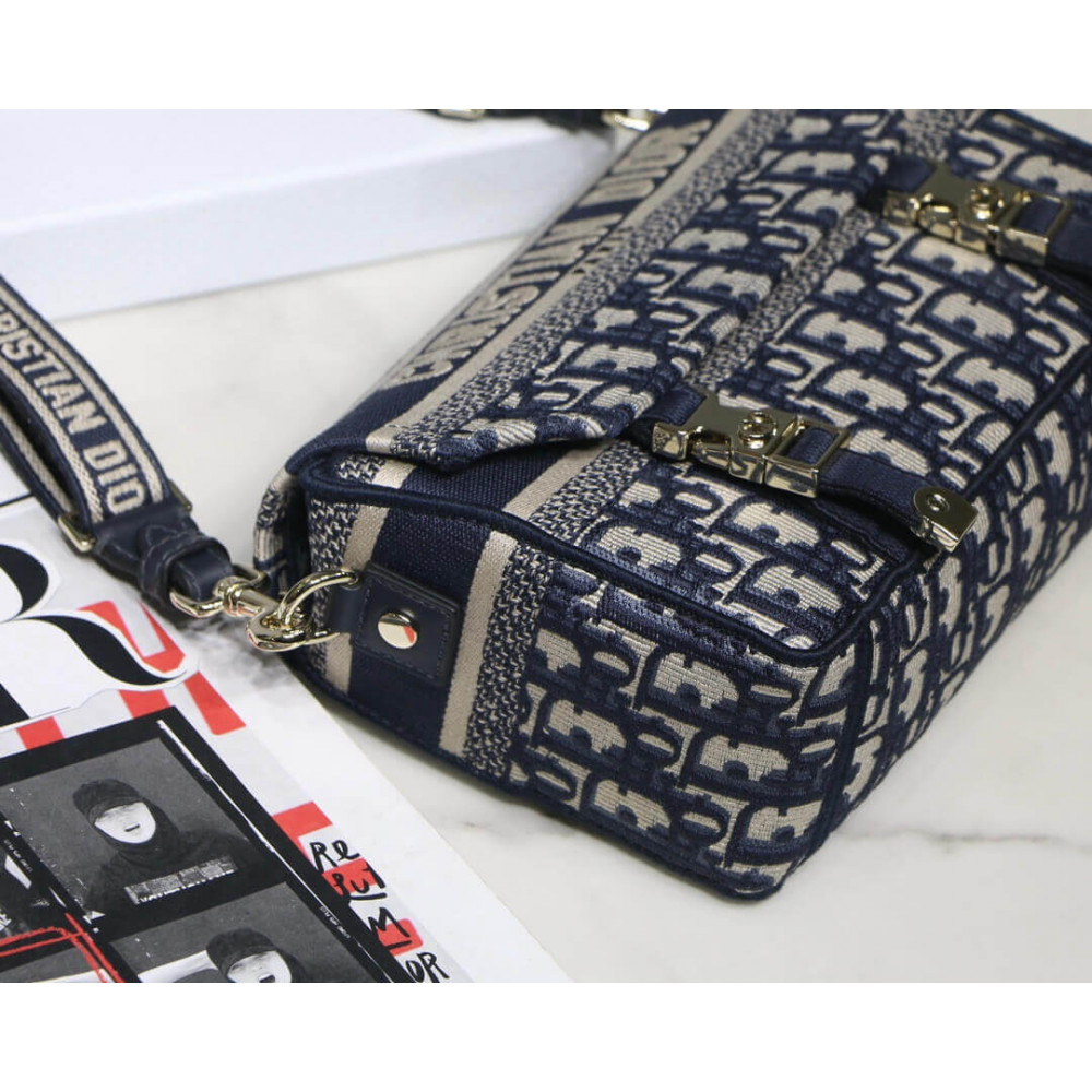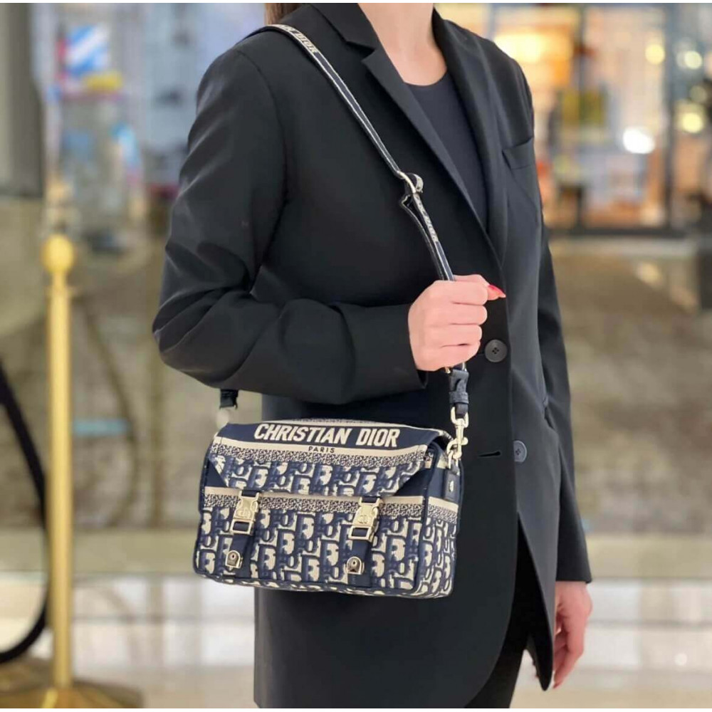 Maria Grazia Chiuri has updated the classic messenger bag by adding signature Dior details for a relaxed and modern look. Fully embroidered with the blue Dior Oblique motif, the bag is enhanced by a ‘CHRISTIAN DIOR PARIS’ signature flap, as well as sportswear-inspired ‘CD’ buckles. Equipped with an adjustable and removable shoulder strap, the small, compact messenger bag can be worn over the shoulder or crossbody, and will make an ideal urban companion.