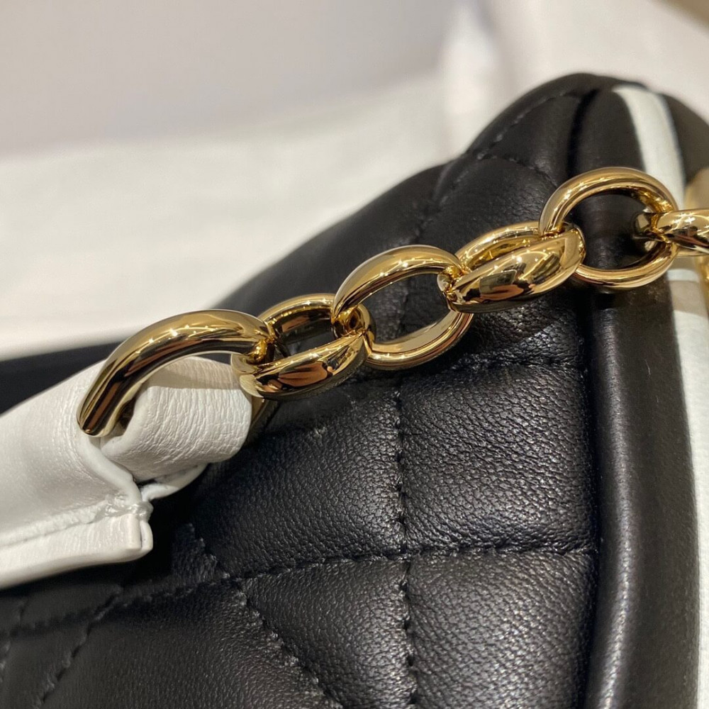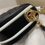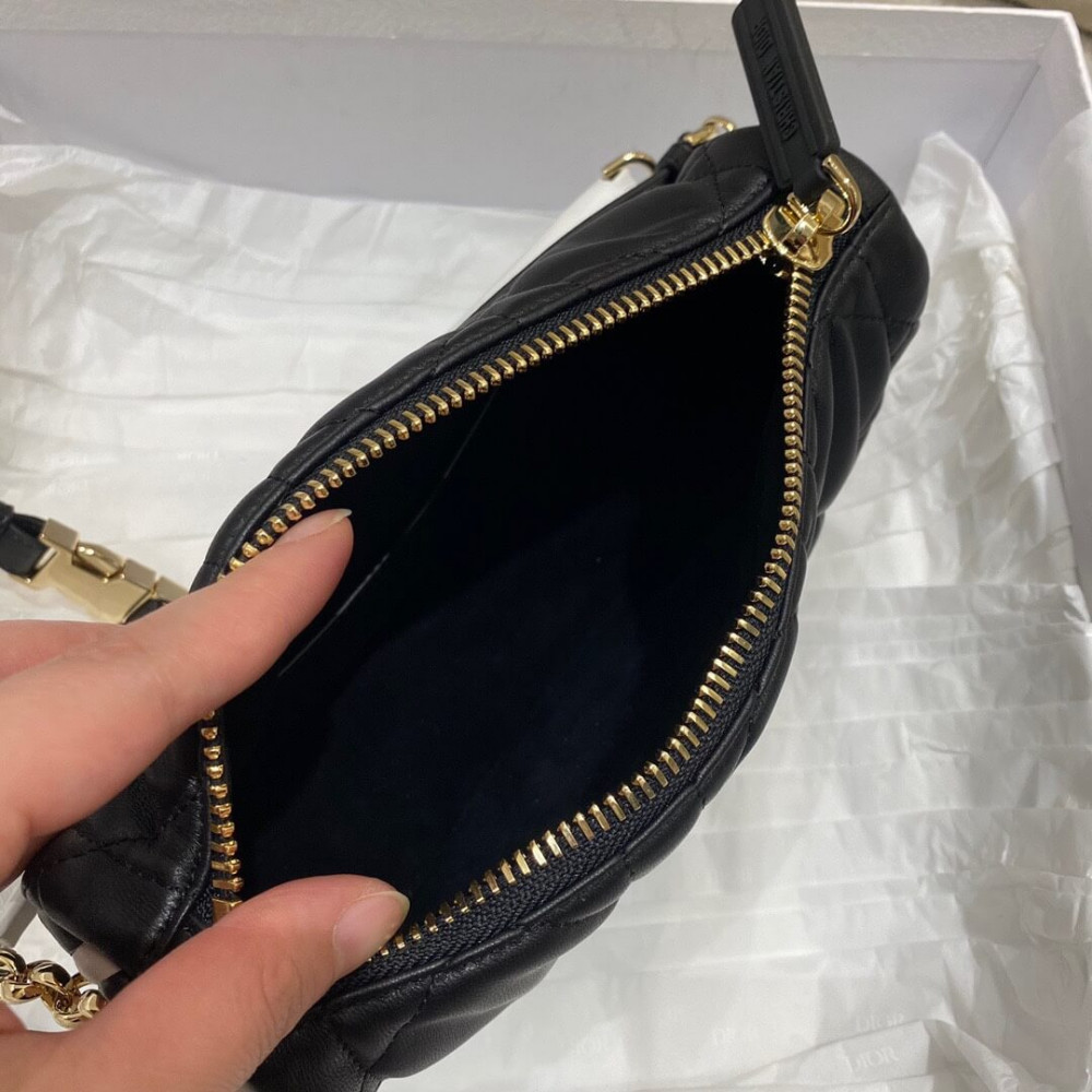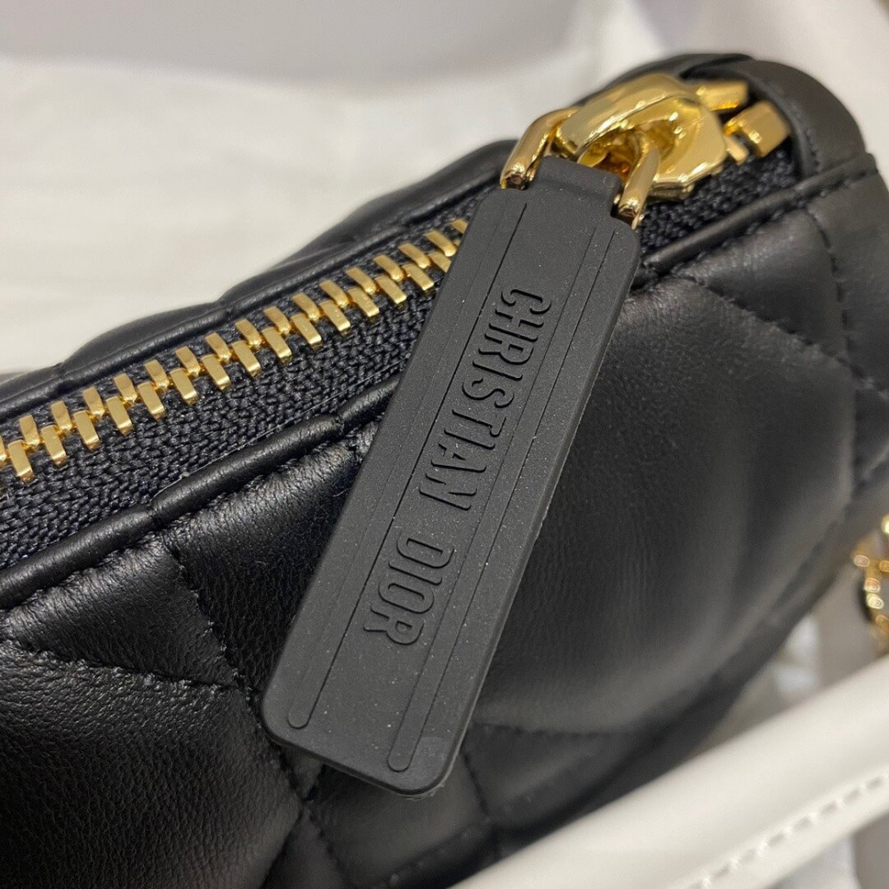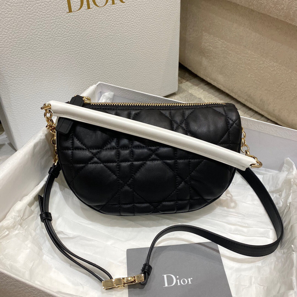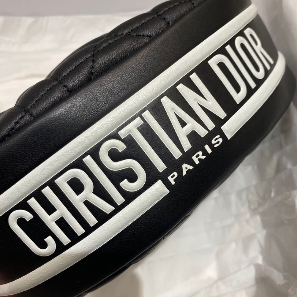 New this season, Maria Grazia Chiuri imagines the Dior Vibe bag with the allure of a Hobo bag showcasing modern lines. The white Cannage lambskin style has a suede calfskin interior while a black ‘CHRISTIAN DIOR PARIS’ signature adorns the bottom of the bag. Featuring a handle in addition to a removable and adjustable shoulder strap with a military-inspired buckle, the small Dior Vibe bag can be carried by hand, worn on the shoulder or crossbody for a sportier look.