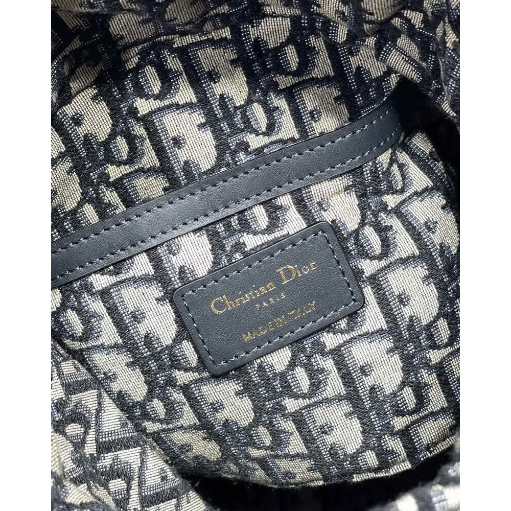 – Blue Dior Oblique jacquard interior with leather drawstring