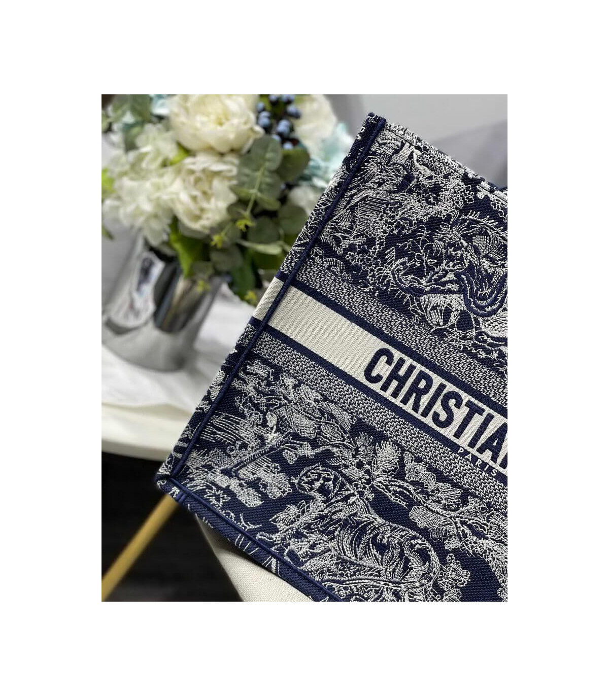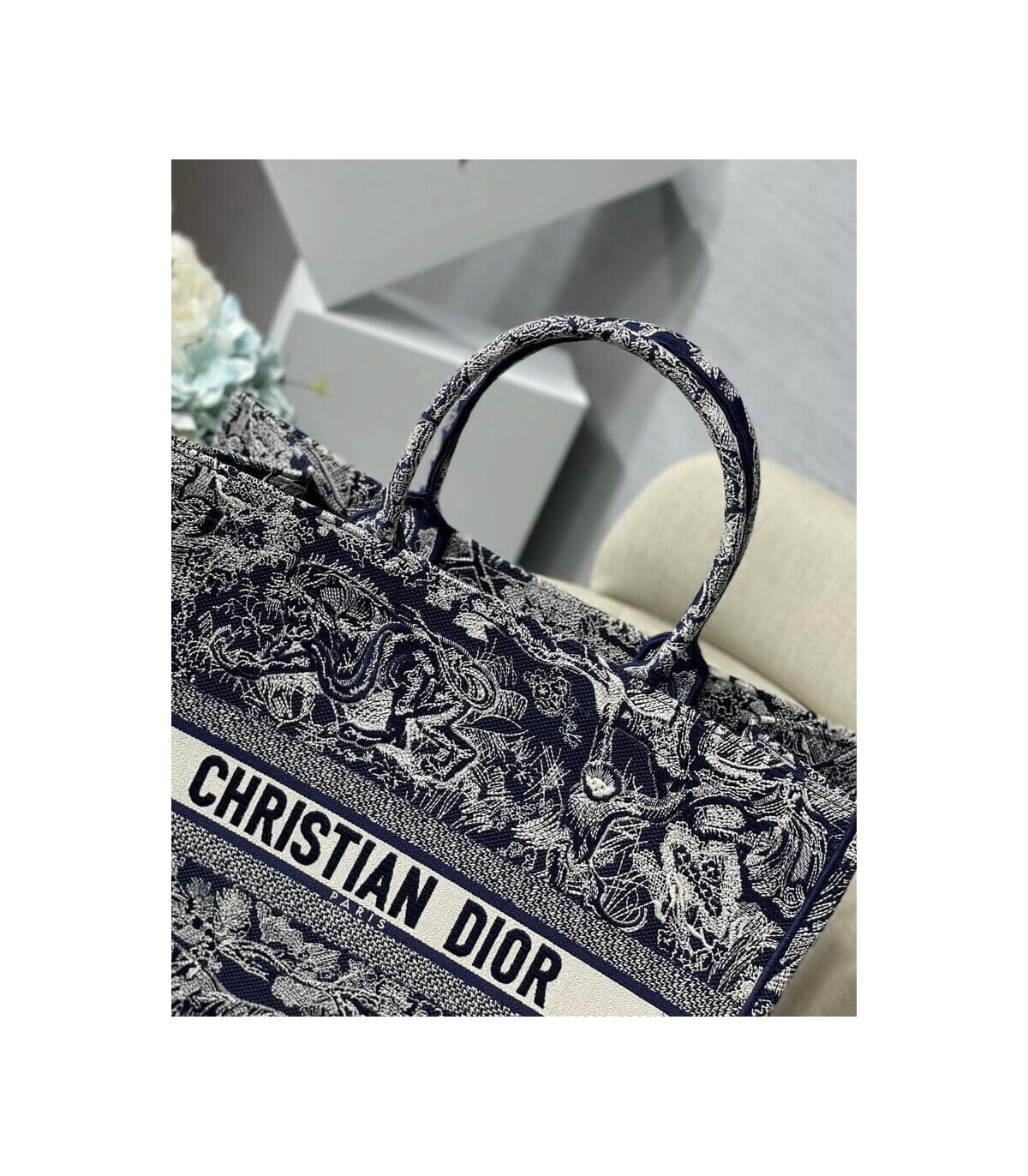 Dior Book Tote Denim Blue Toile de Jouy Embroidery 36cm