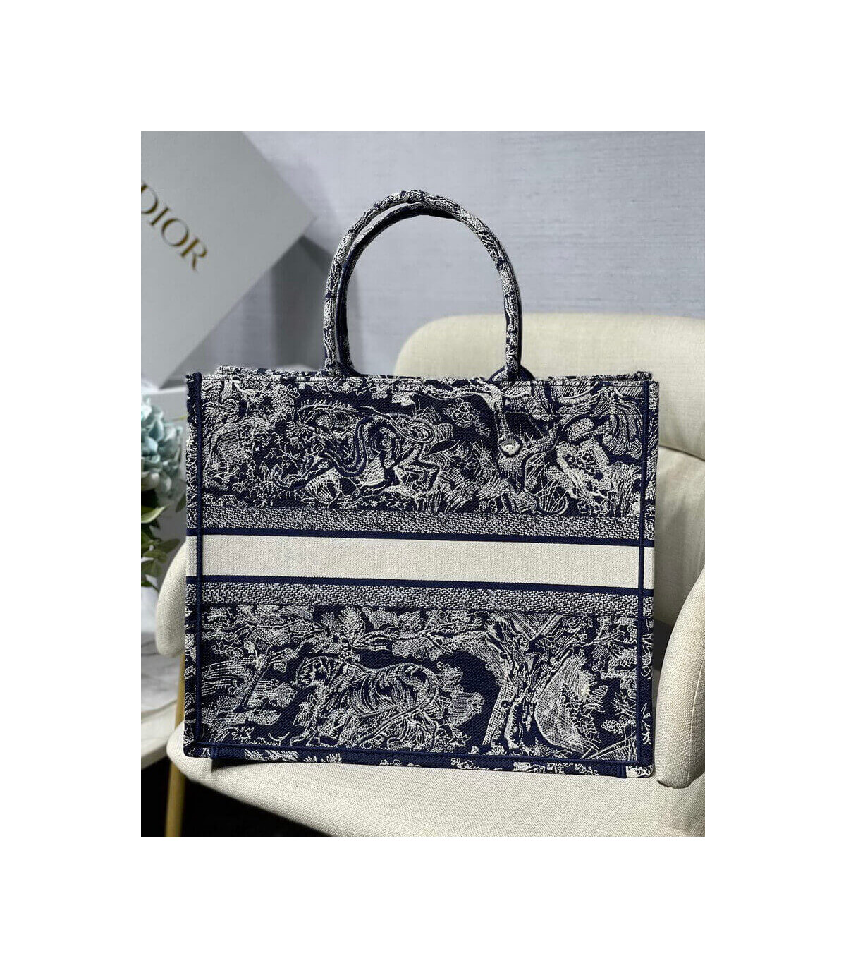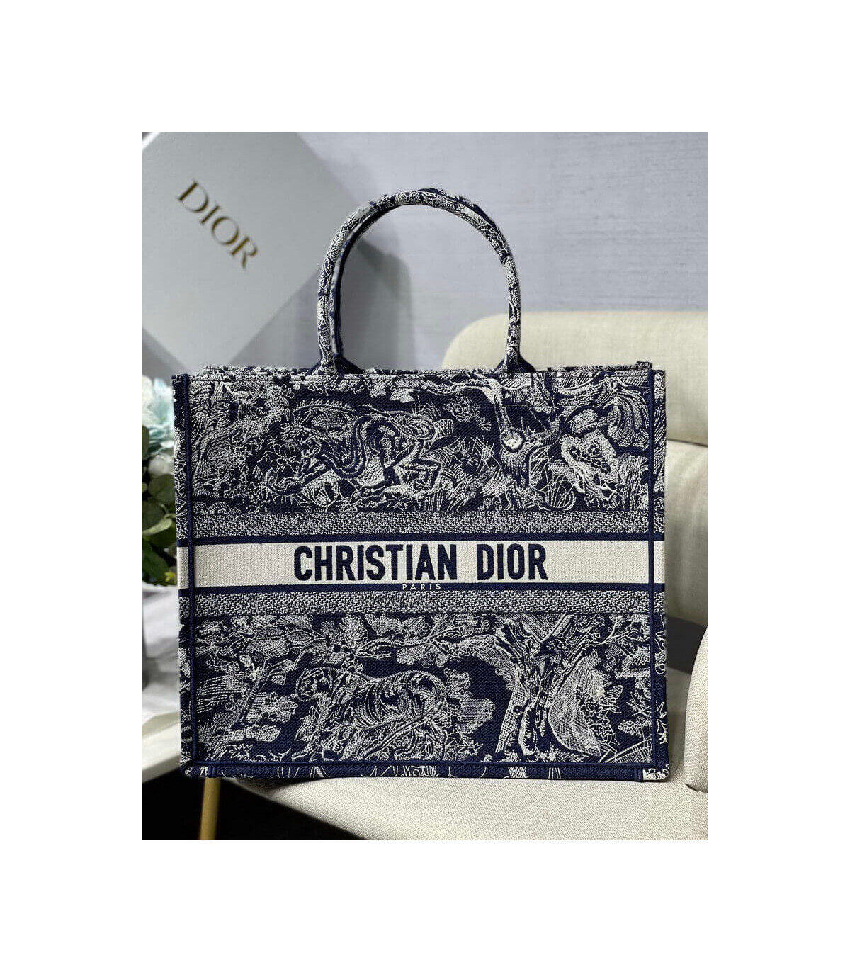 Home Shop All Bags Dior Dior Book Tote Blue Toile de Jouy Reverse Embroidery