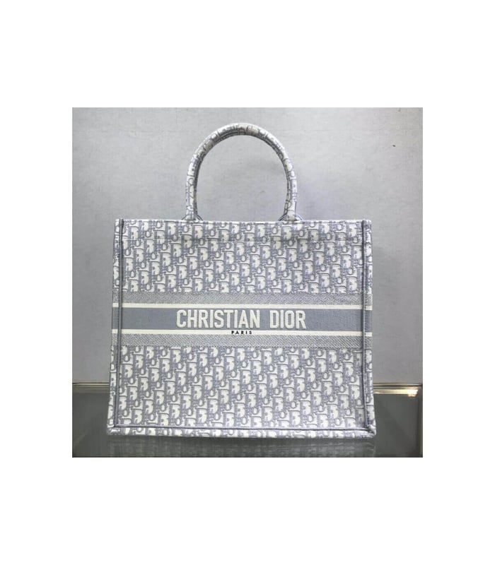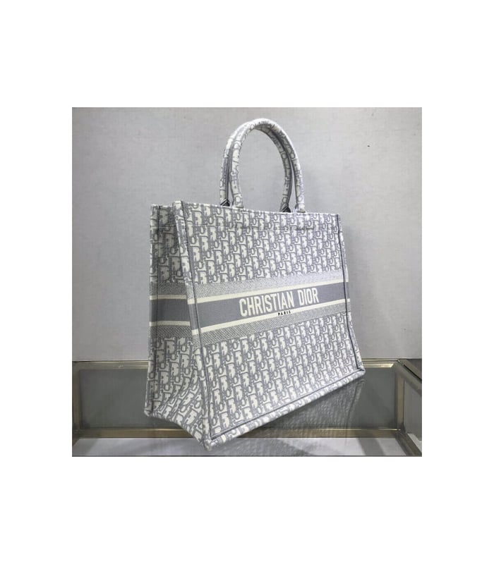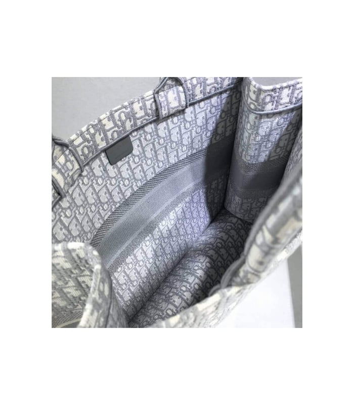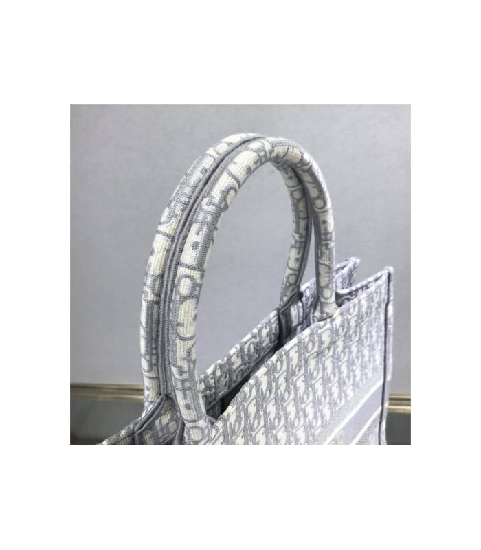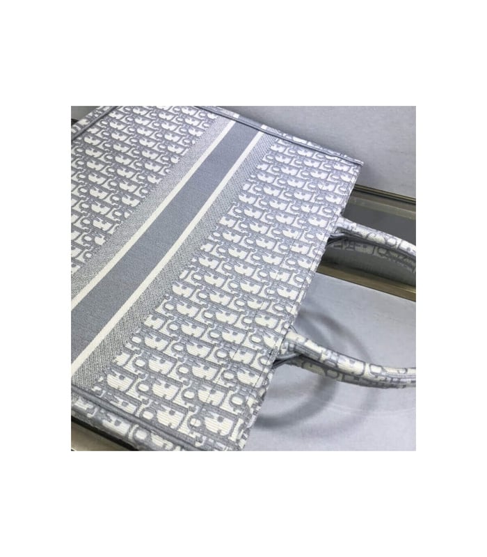 The Dior Book Tote, an original style introduced by Creative Director Maria Grazia Chiuri, has become a staple of the Dior aesthetic. Ideally designed to carry all your daily essentials, the large shape is fully embroidered with a gray Dior Oblique pattern and the ‘Christian Dior’ signature on the front. This carryall is a perfect example of the Dior savoir-faire and it may be worn with other small accessories or the Mitzah scarf for a complete look.