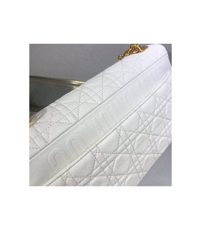 Dior Large Caro Bag White Supple Cannage Calfskin