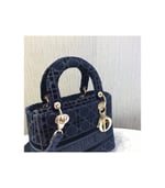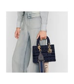 Dior Medium Lady D-Lite Bag Dark Denim Blue Cannage Embroidered