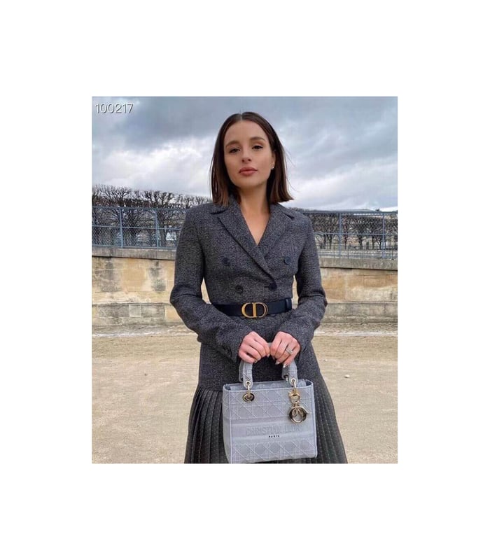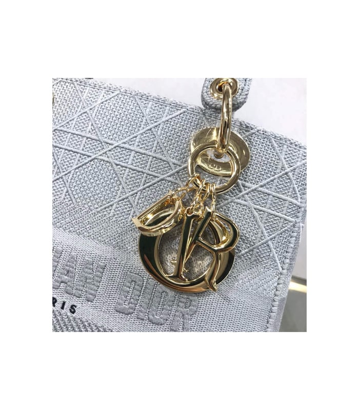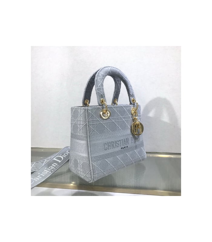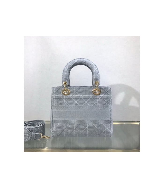 Home Shop All Bags Dior Dior Medium Lady D-Lite Bag Gray Cannage Embroidered