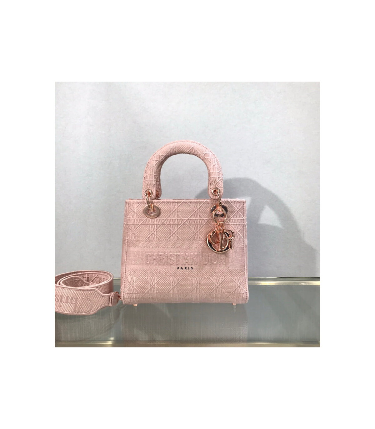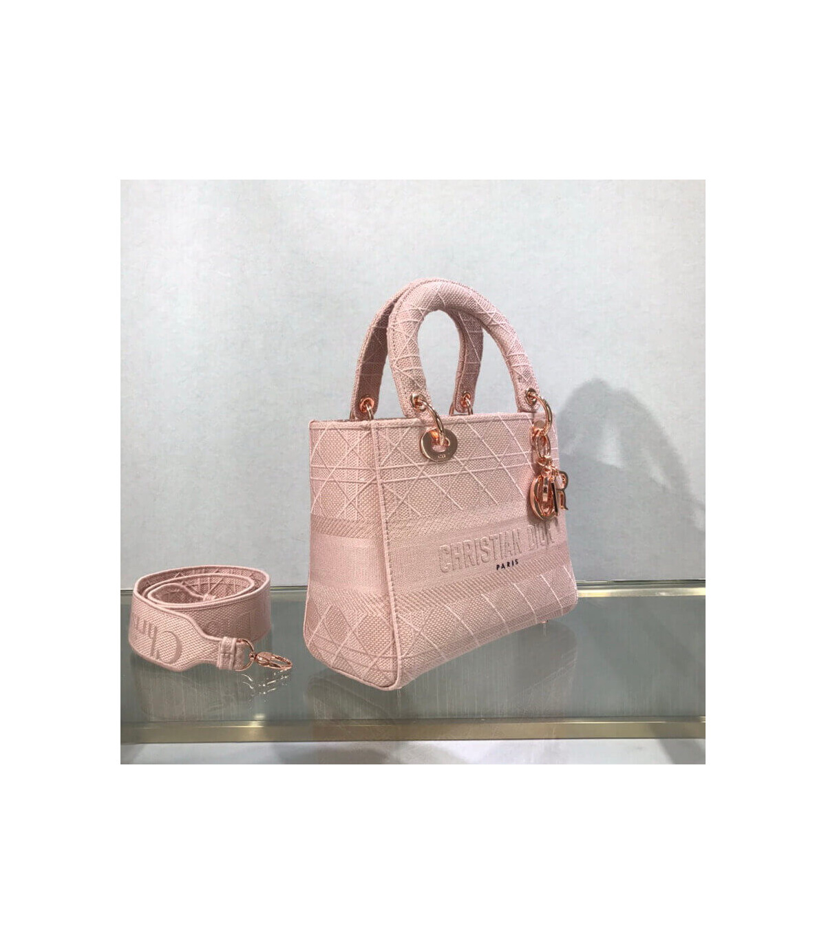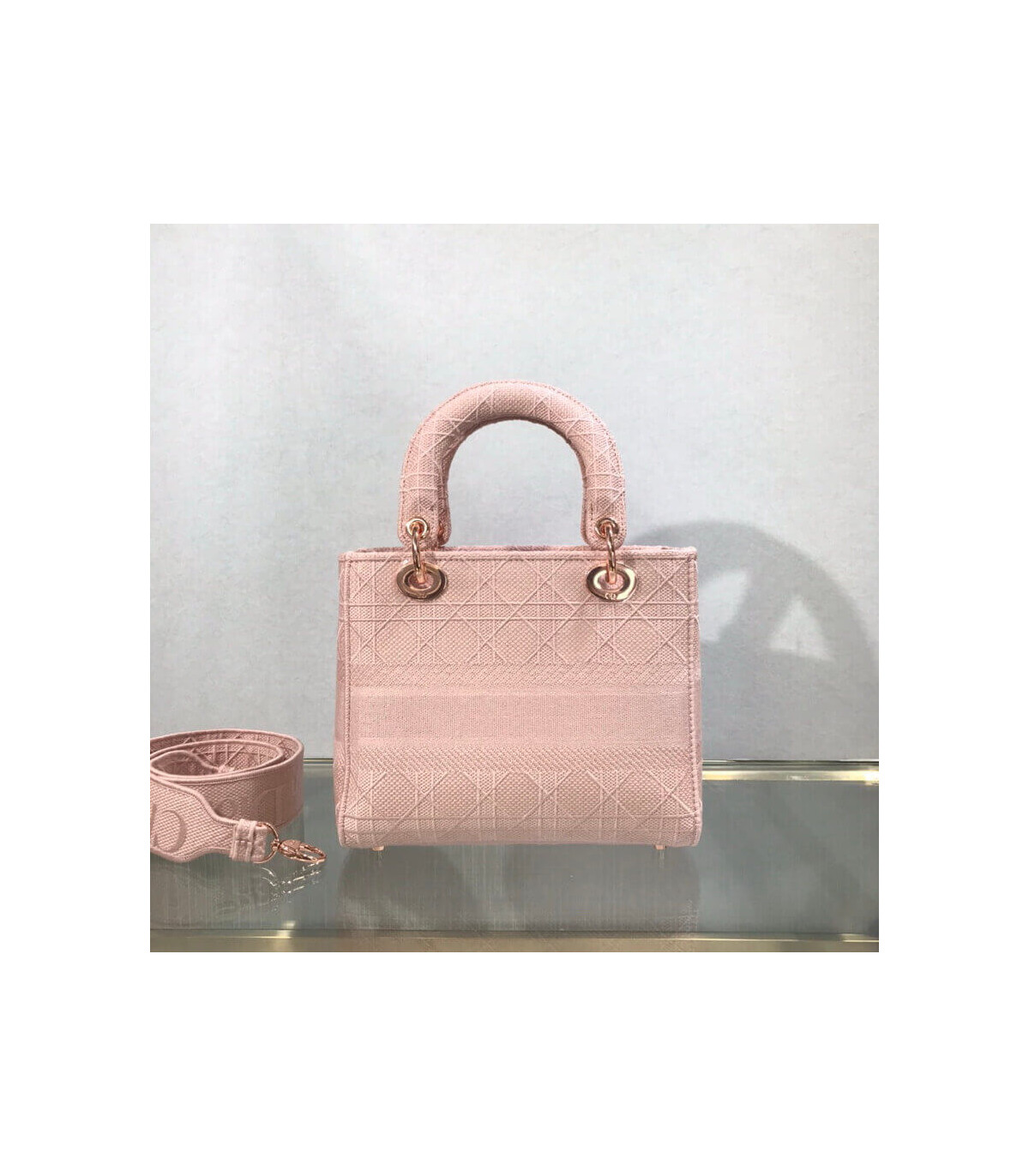 Home Shop All Bags Dior Dior Medium Lady D-Lite Bag Pink Cannage Embroidered