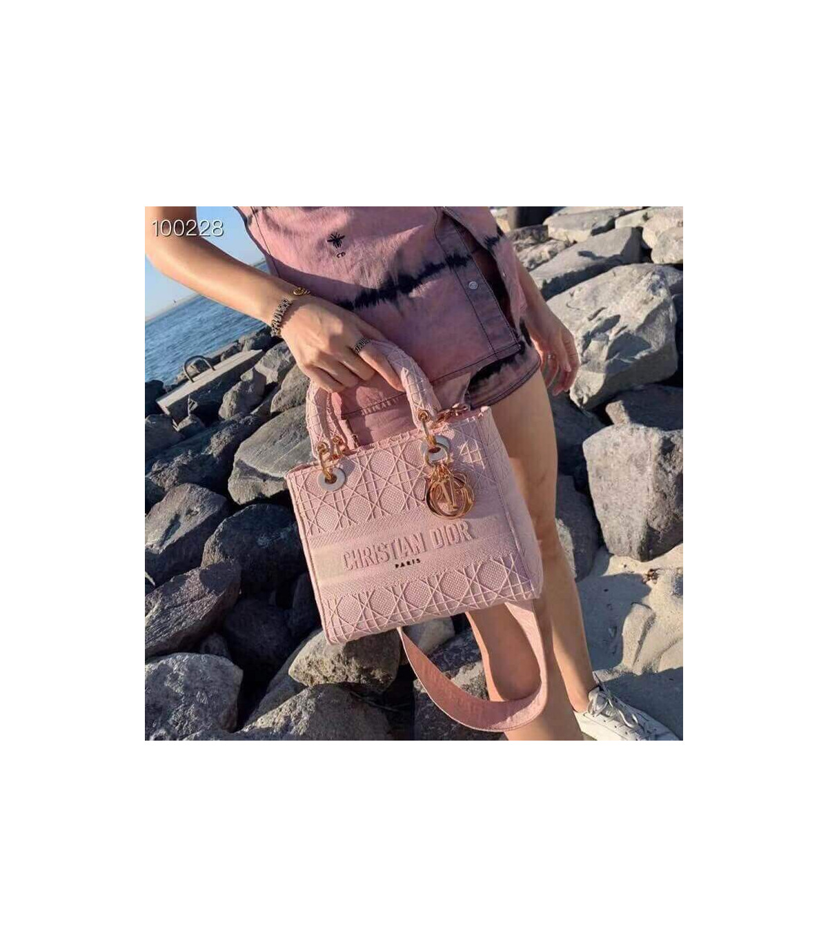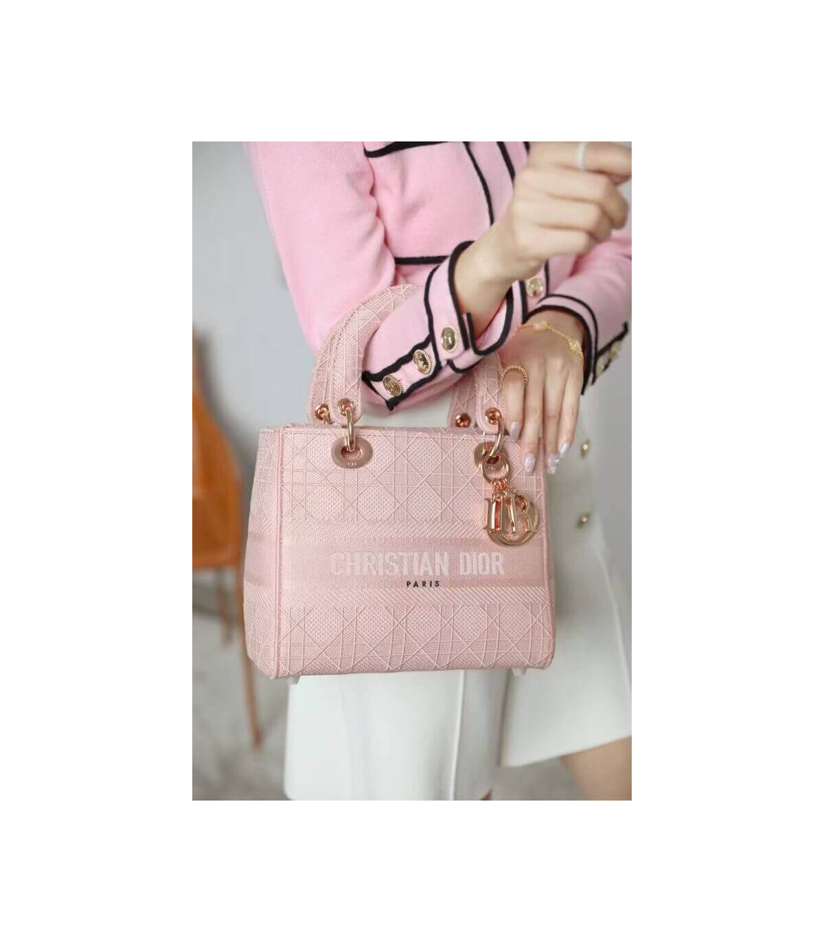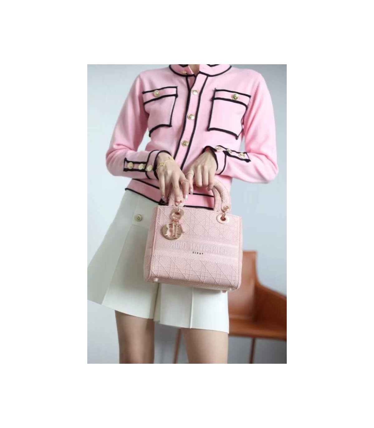 Home Shop All Bags Dior Dior Medium Lady D-Lite Bag Pink Cannage Embroidered